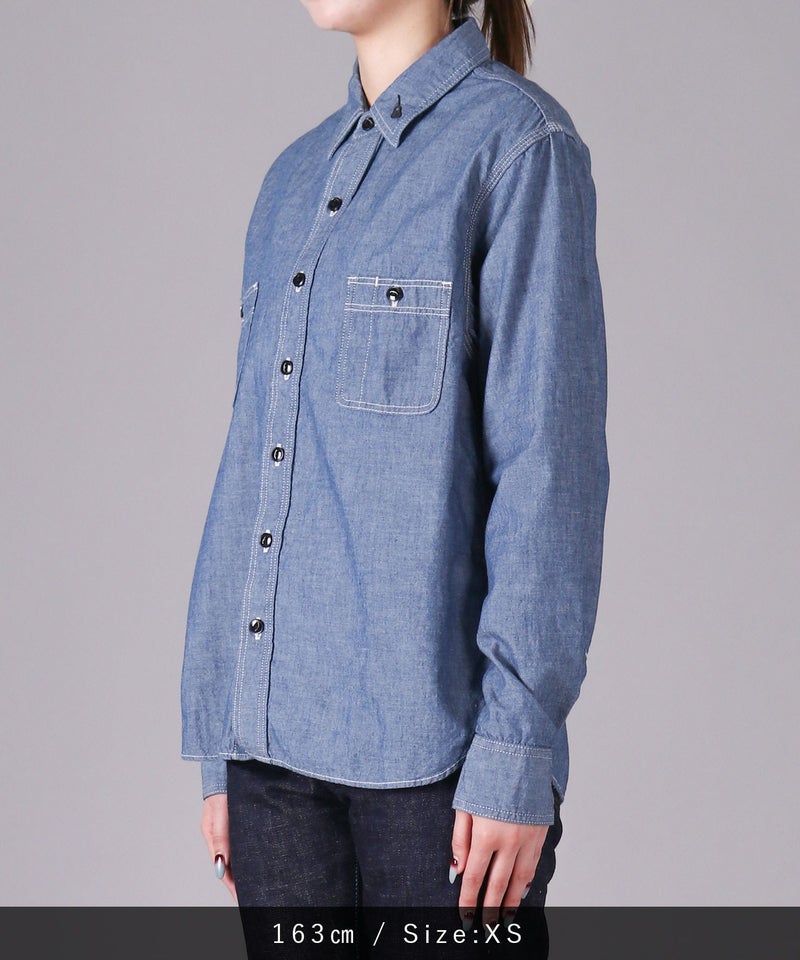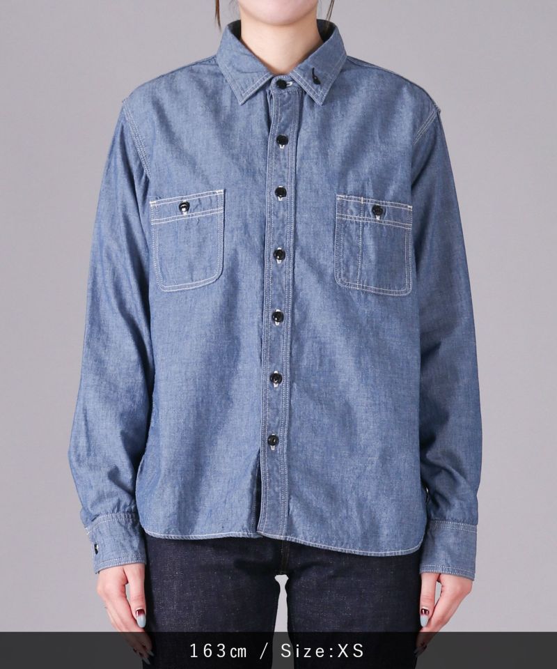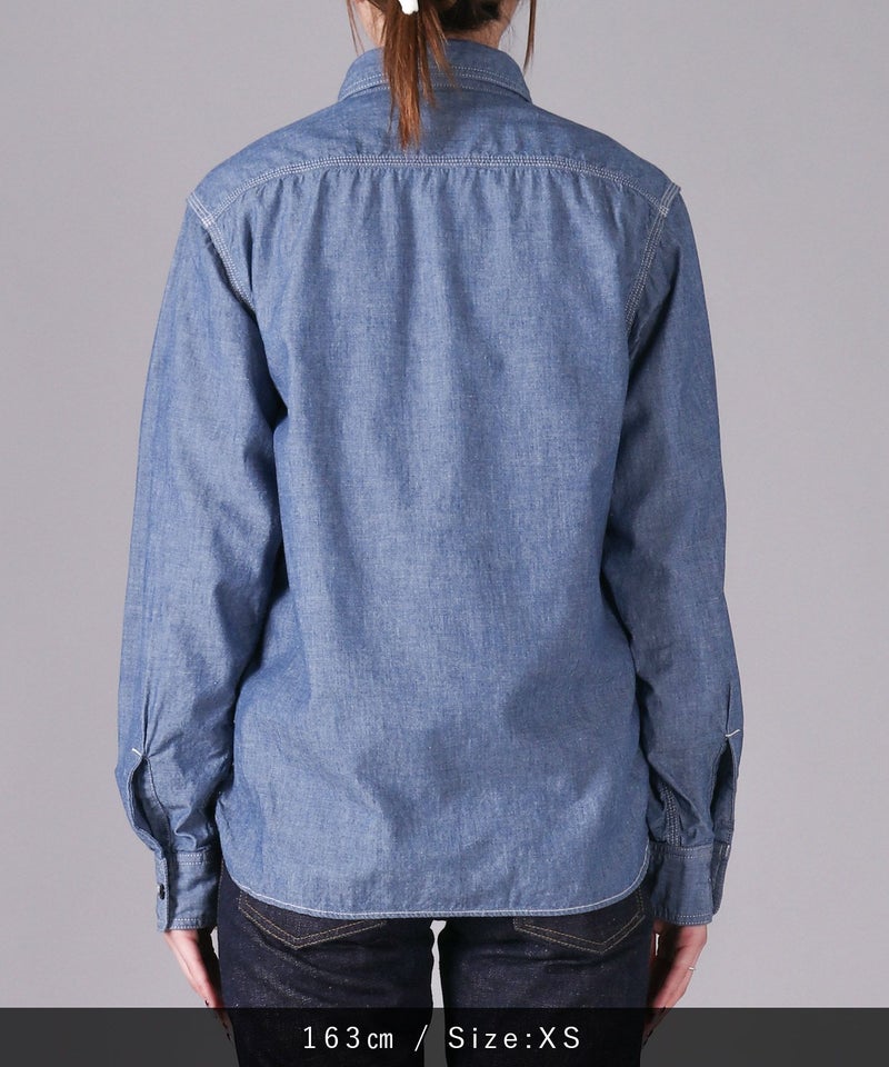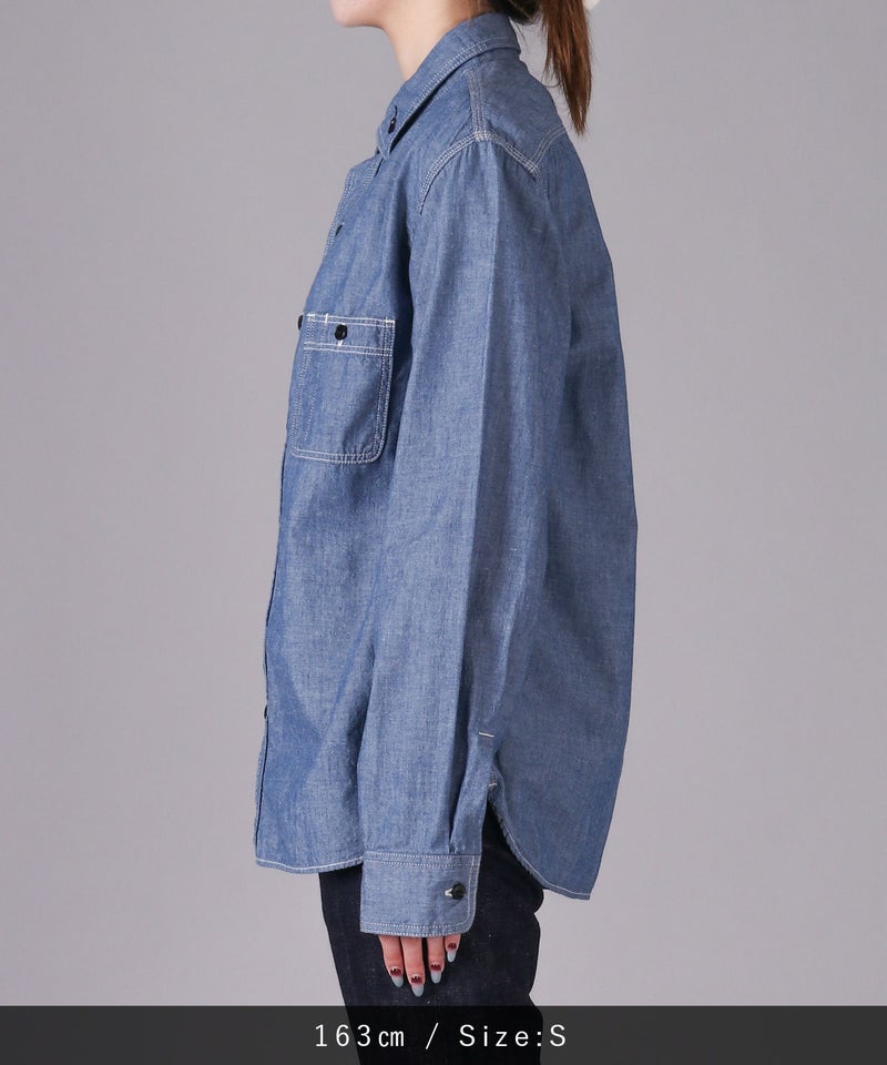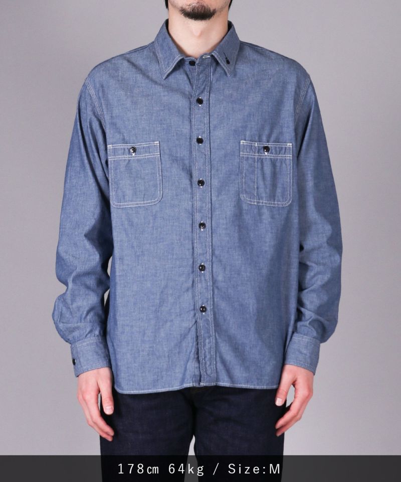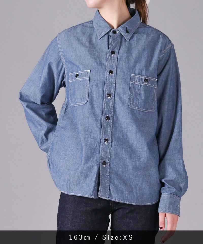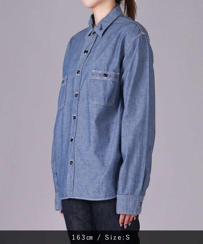 男性女性問わず、着用しやすいシャンブレーシャツ。