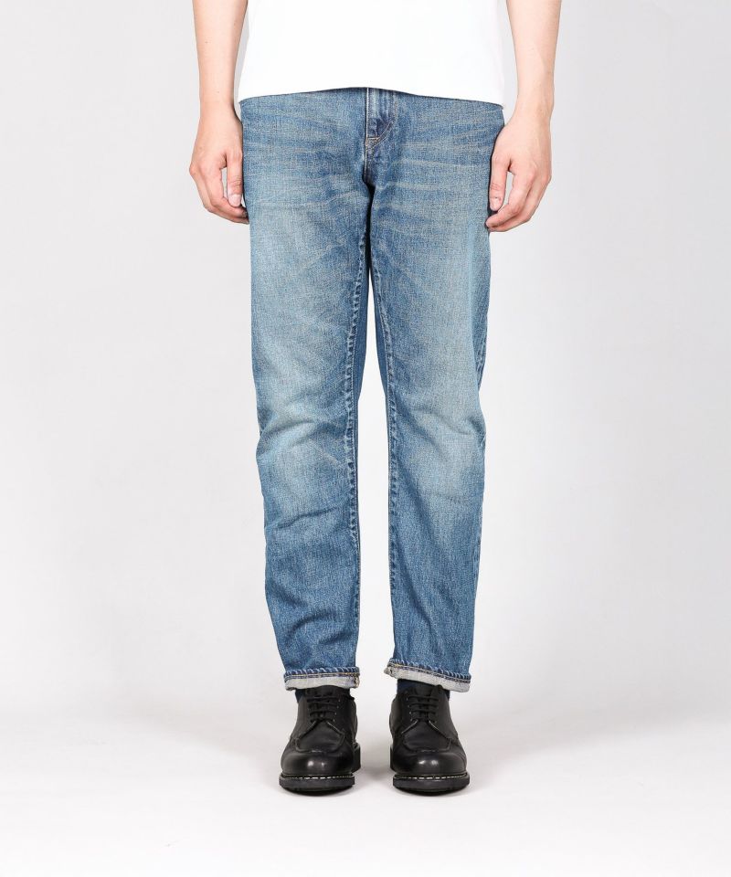 しっかり穿きこまれたジーンズをイメージして、生地が本来持つナチュラルな茶綿の風合いを表現した色落ちを児島の加工技術で再現しています。