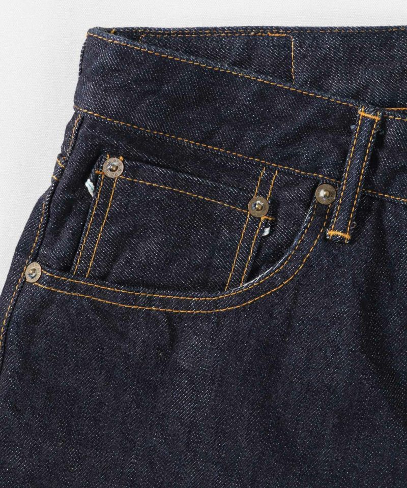 深めの股上とやや太めのシルエットのクラシックストレートモデル。
