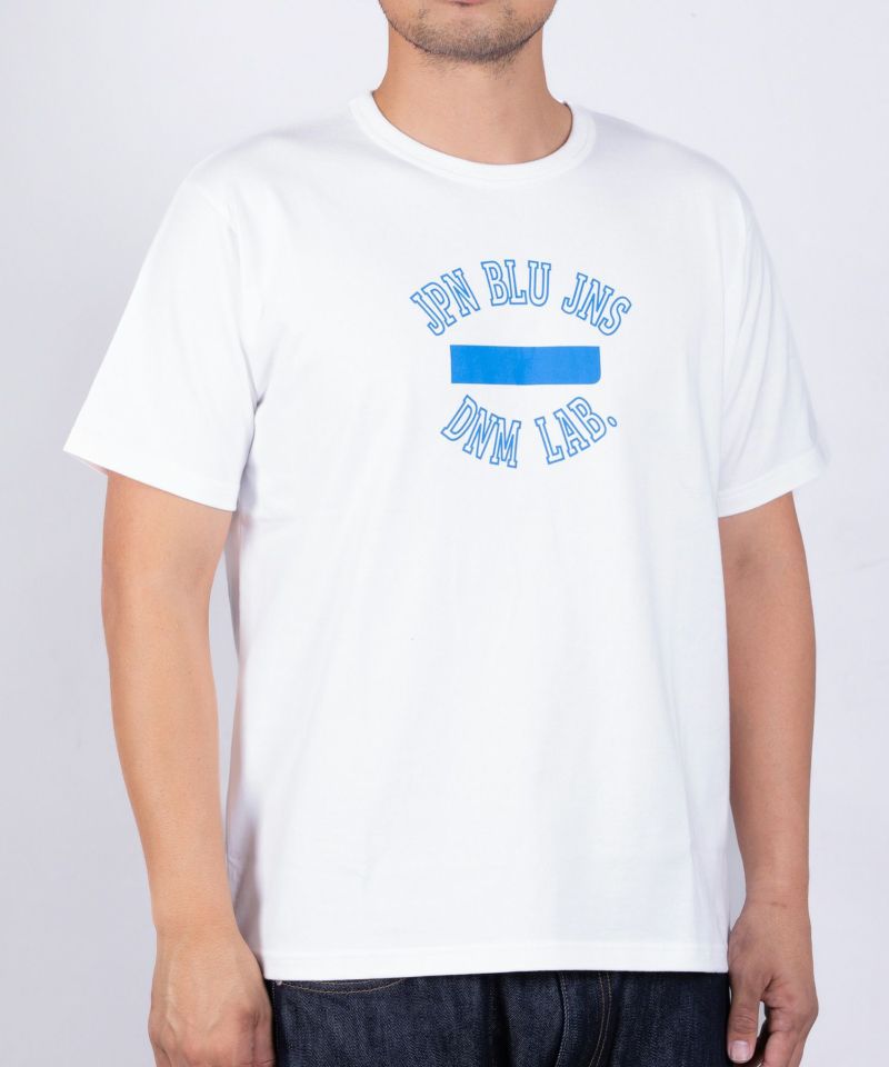 JAPAN BLUE JEANSのブランドネームをプリントしたカレッジTシャツ。