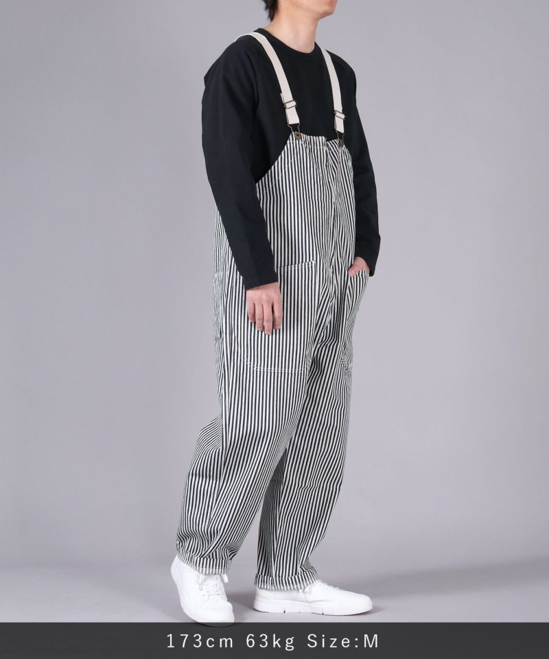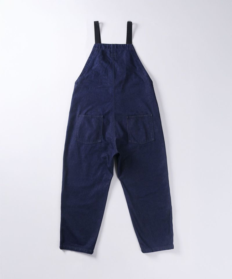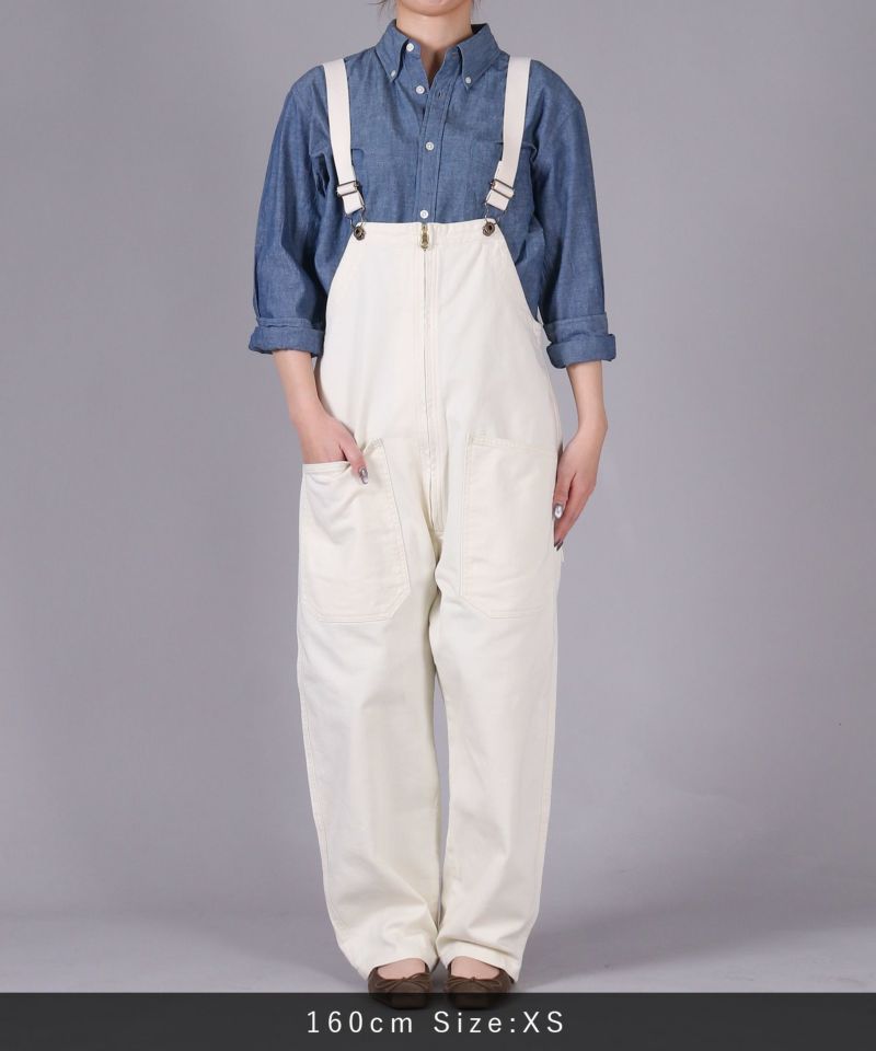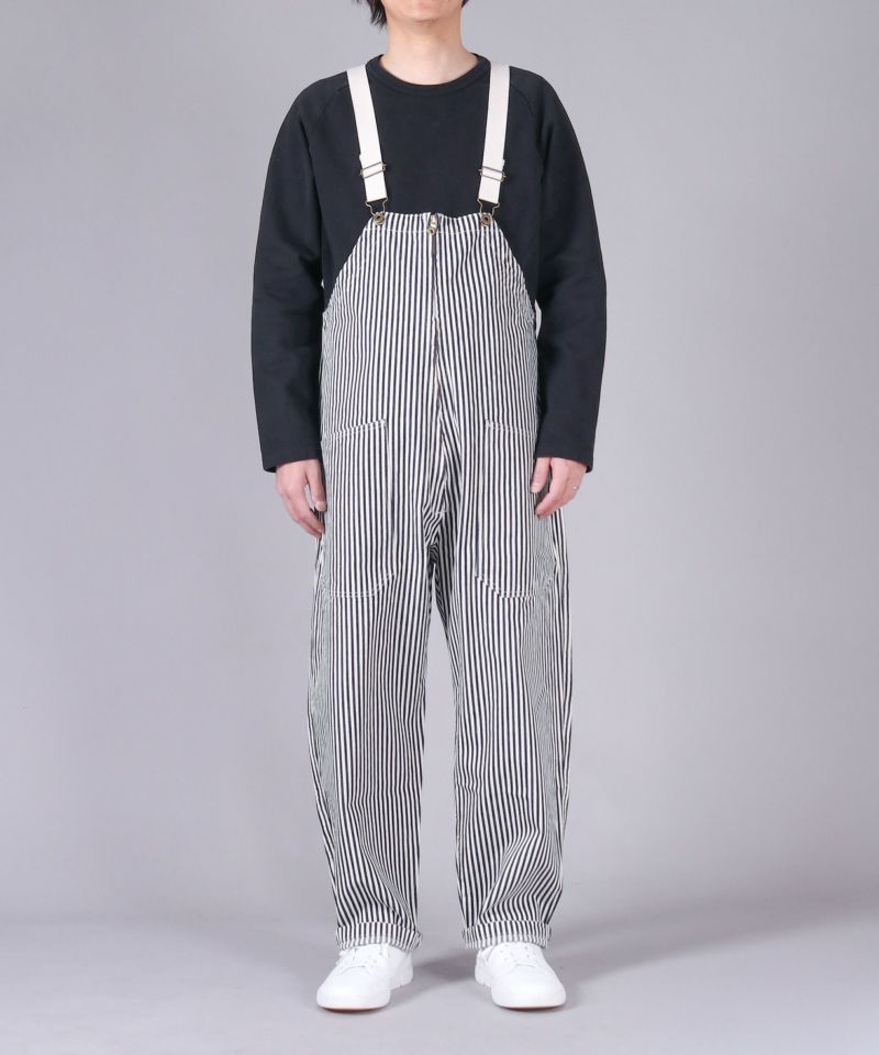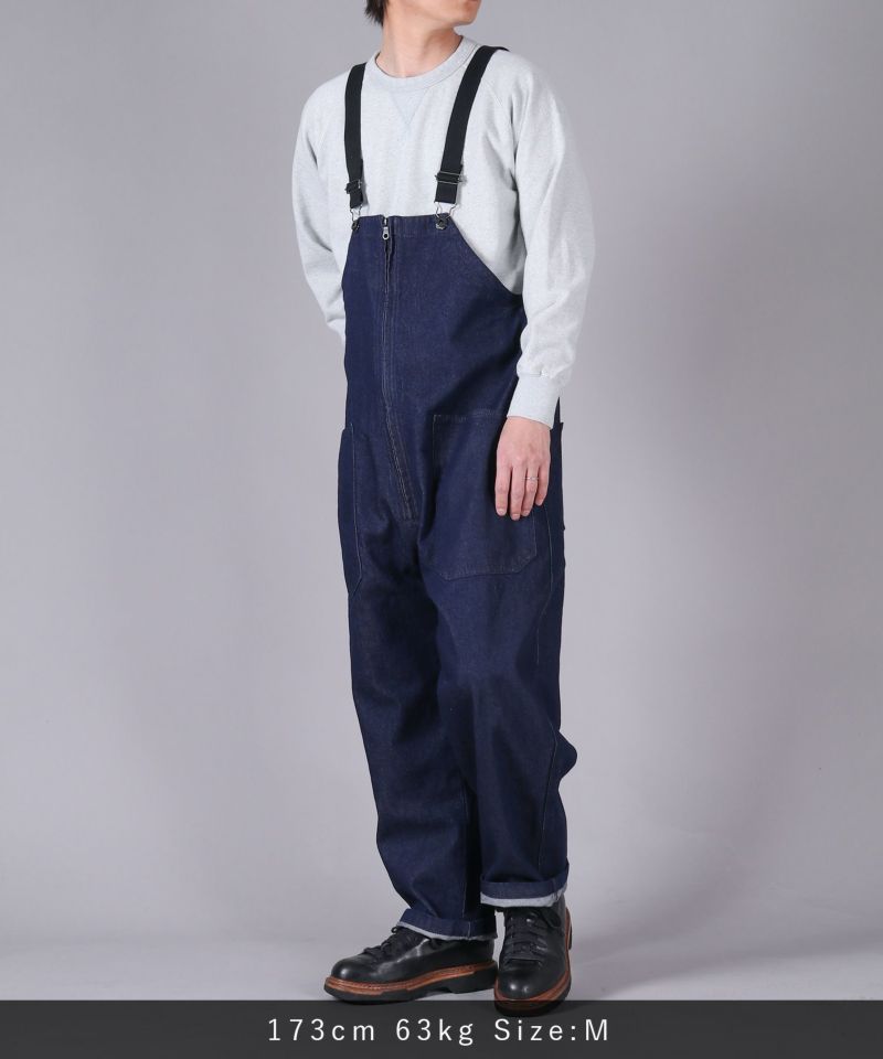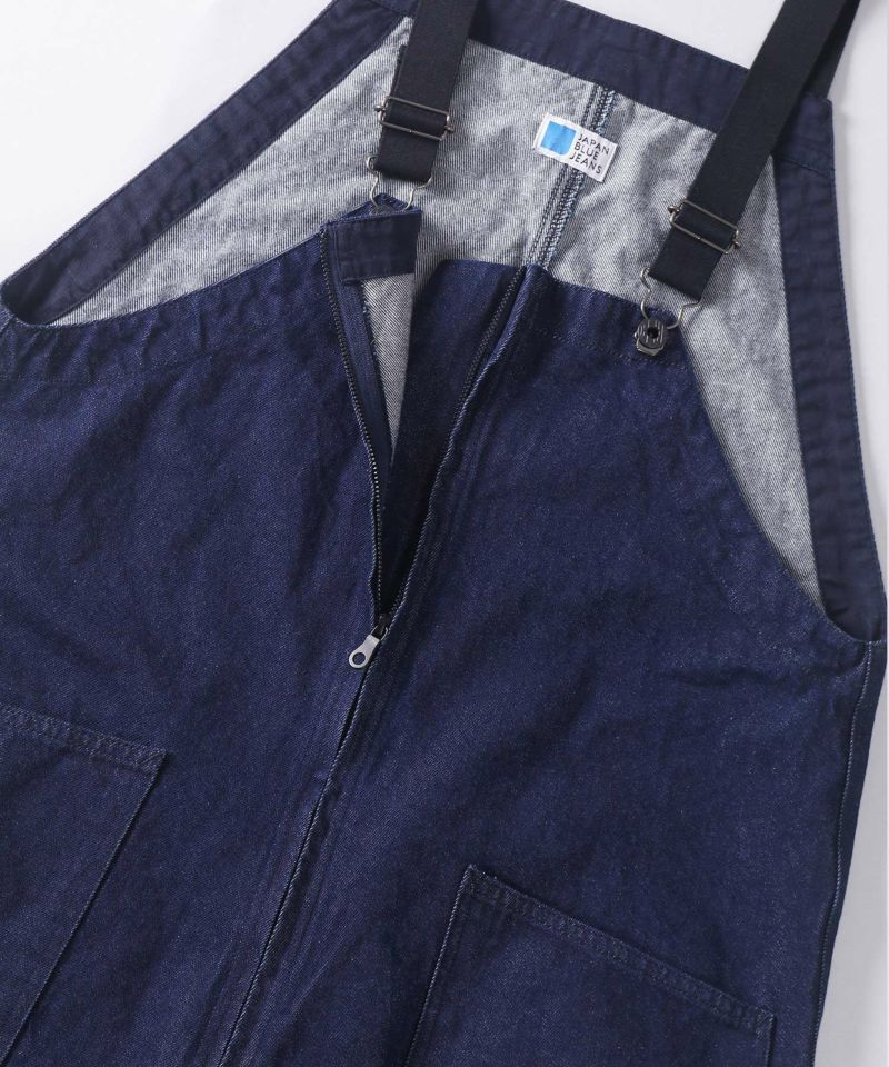 フロントファスナーとゆったりしたデザインが特徴的なオーバーオール。
