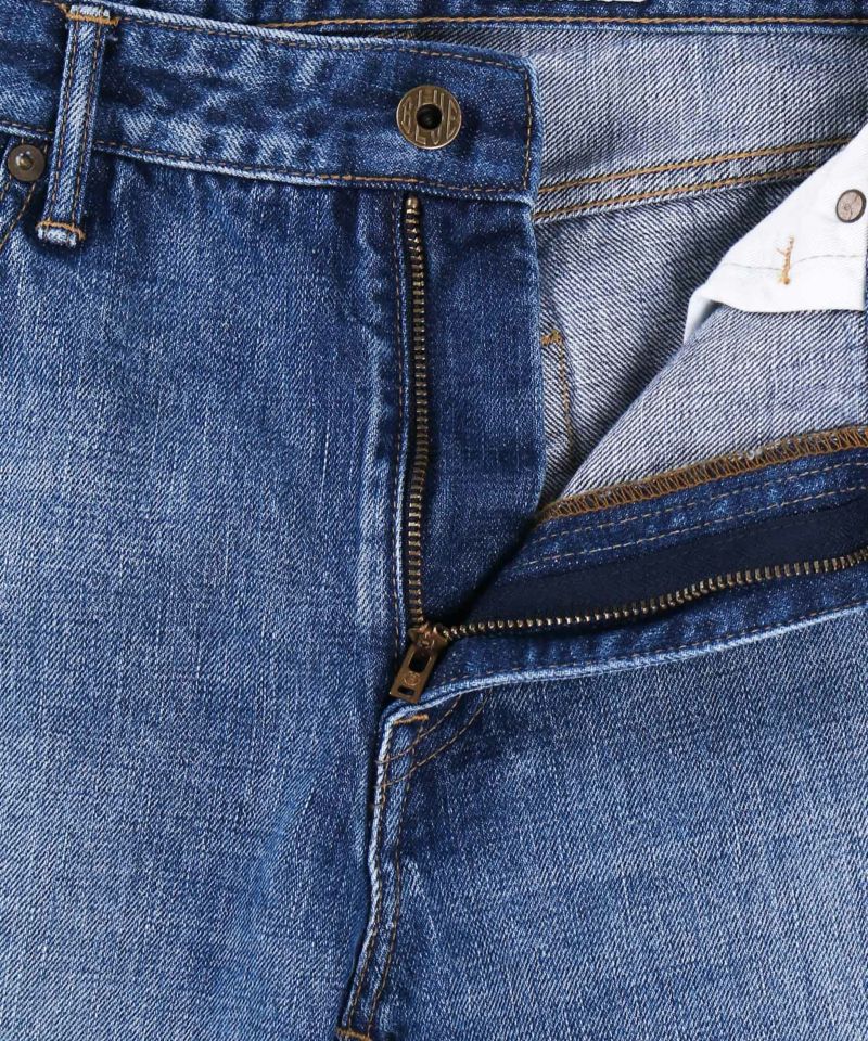 淡いフェード感のあるインディゴらしい爽やかな経年変化を児島の加工技術で表現。