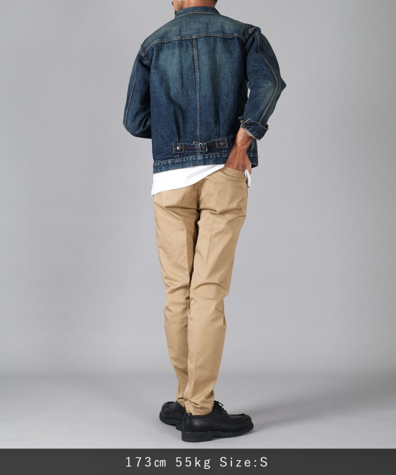 クリーンな印象のストレッチチノを使用することで、カジュアル過ぎずキレイ目な印象にまとめています。