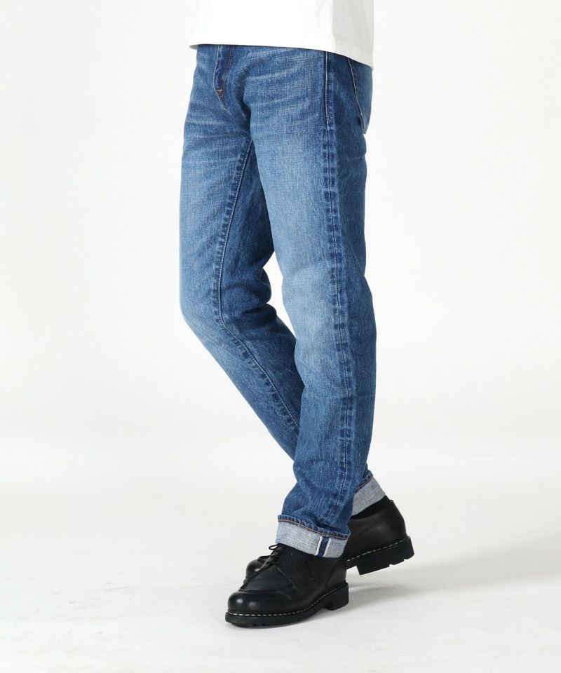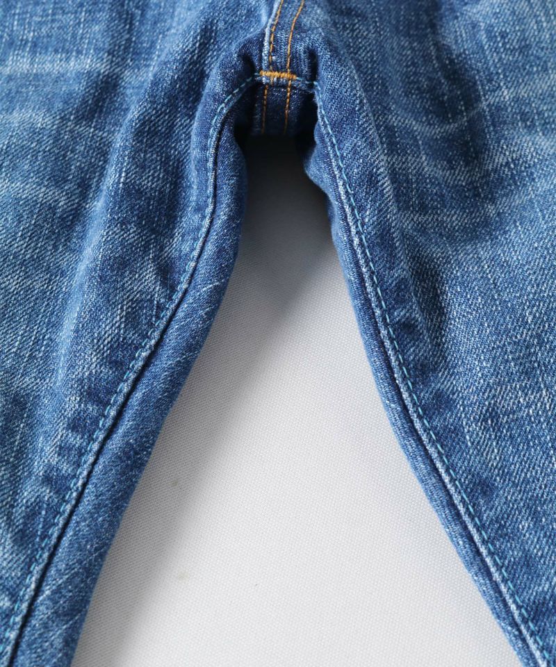 自然な色落ちが映え、こなれ感を演出するミディアムインディゴブルー。
