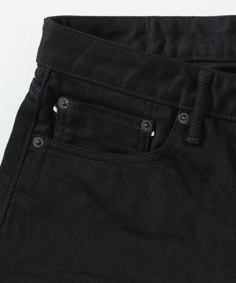 タテ糸・ヨコ糸ともに硫化染色の糸を使用した、深みのあるブラックが魅力。