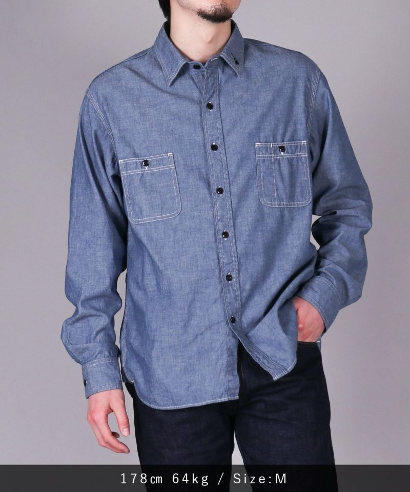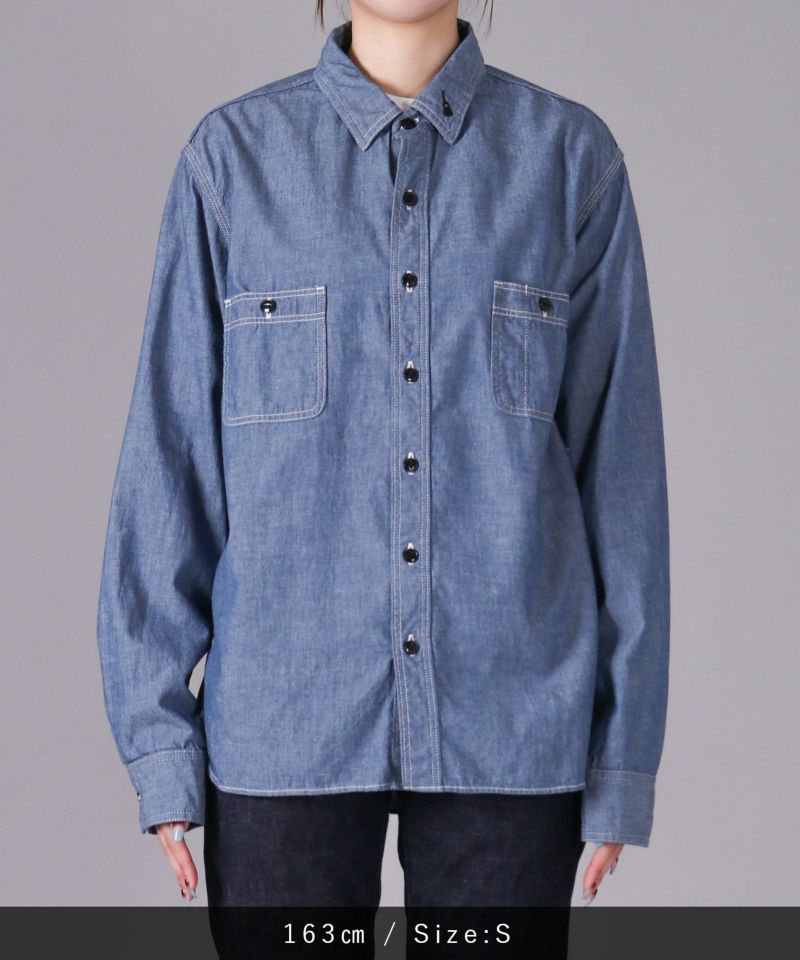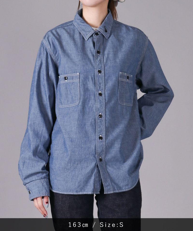 男性女性問わず、着用しやすいシャンブレーシャツ。