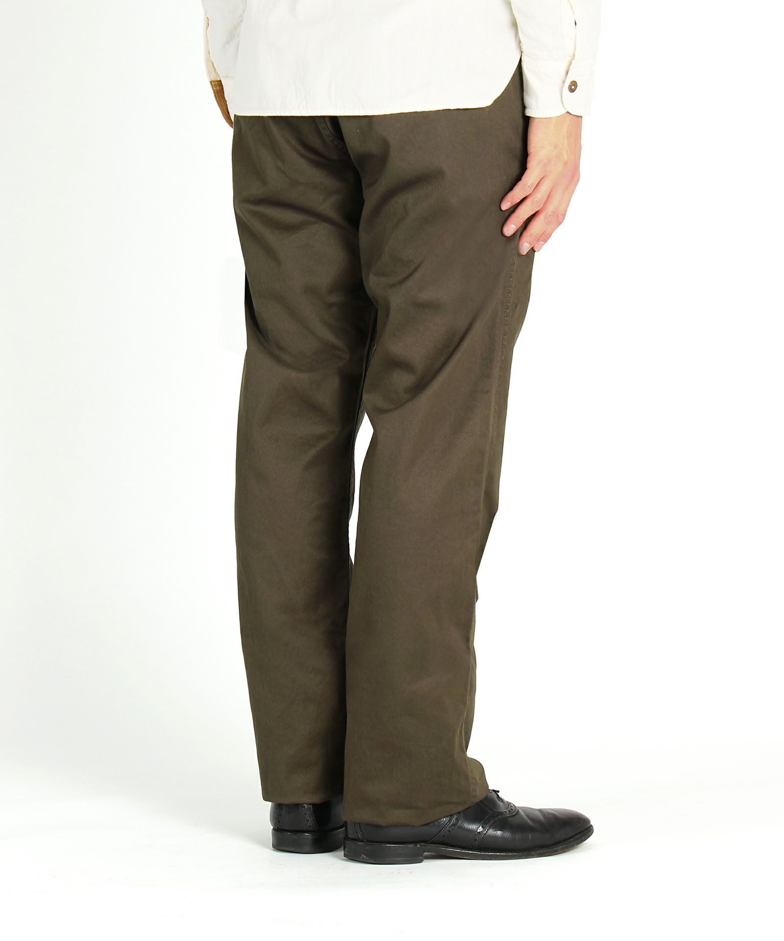 長繊維のコーマ糸を使用し高密度に織り上げたウエストポイント生地は、やや肉厚で肌ざわりが良く、しっかりとした穿き心地です。
