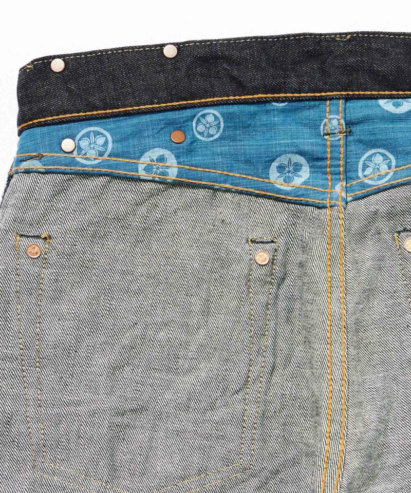 生地仕様:14.7oz 特濃インディゴブルーデニム / 右綾織り / 防縮加工 / ねじれ防止加工 / 毛焼き加工