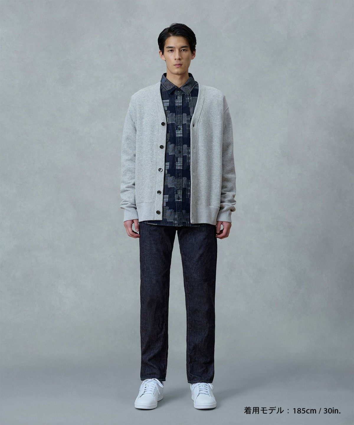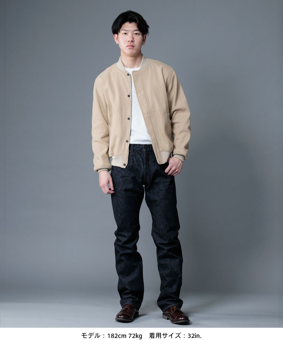 【桃太郎JEANS】HEAVY MELTON x INDIGO LEATHER VARSITY JACKET