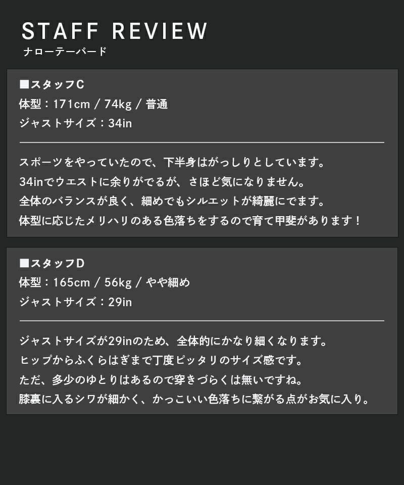 セカンドウォッシュ時の僅かな縮み分を考慮し若干長めに裾上げを行いますので、裾上げ寸法はご希望の長さをご指定ください。