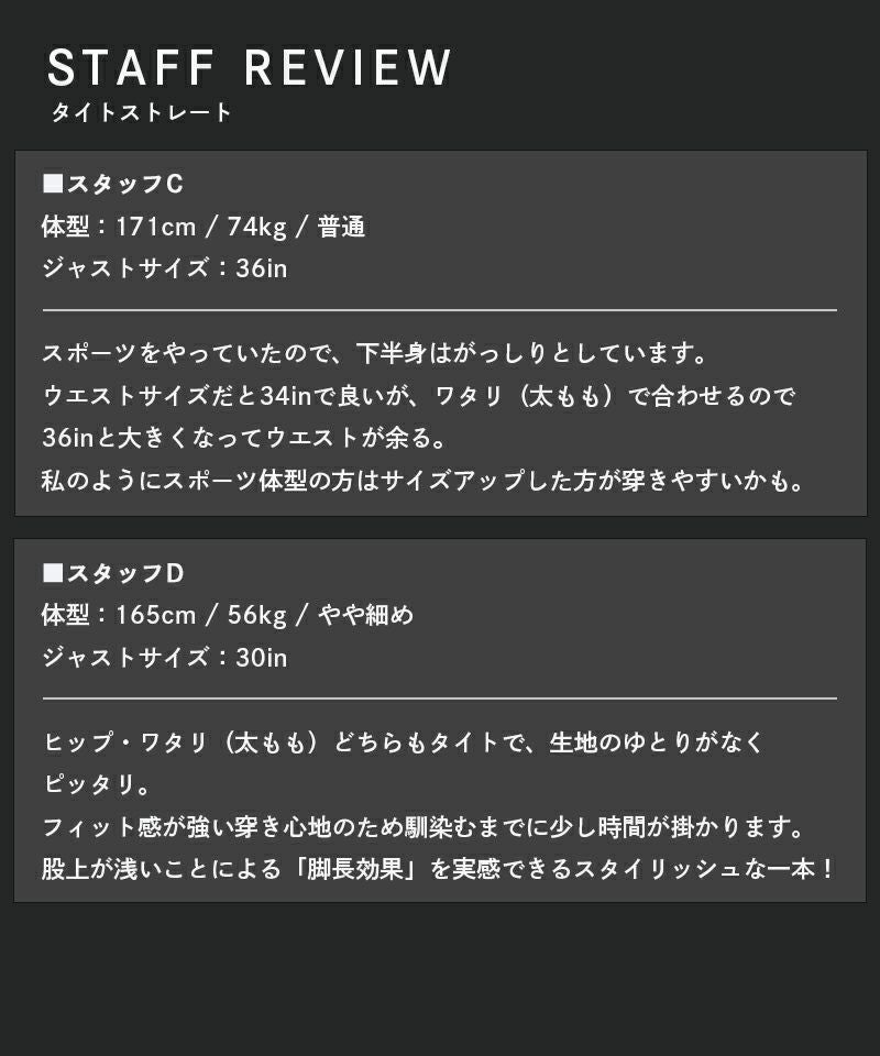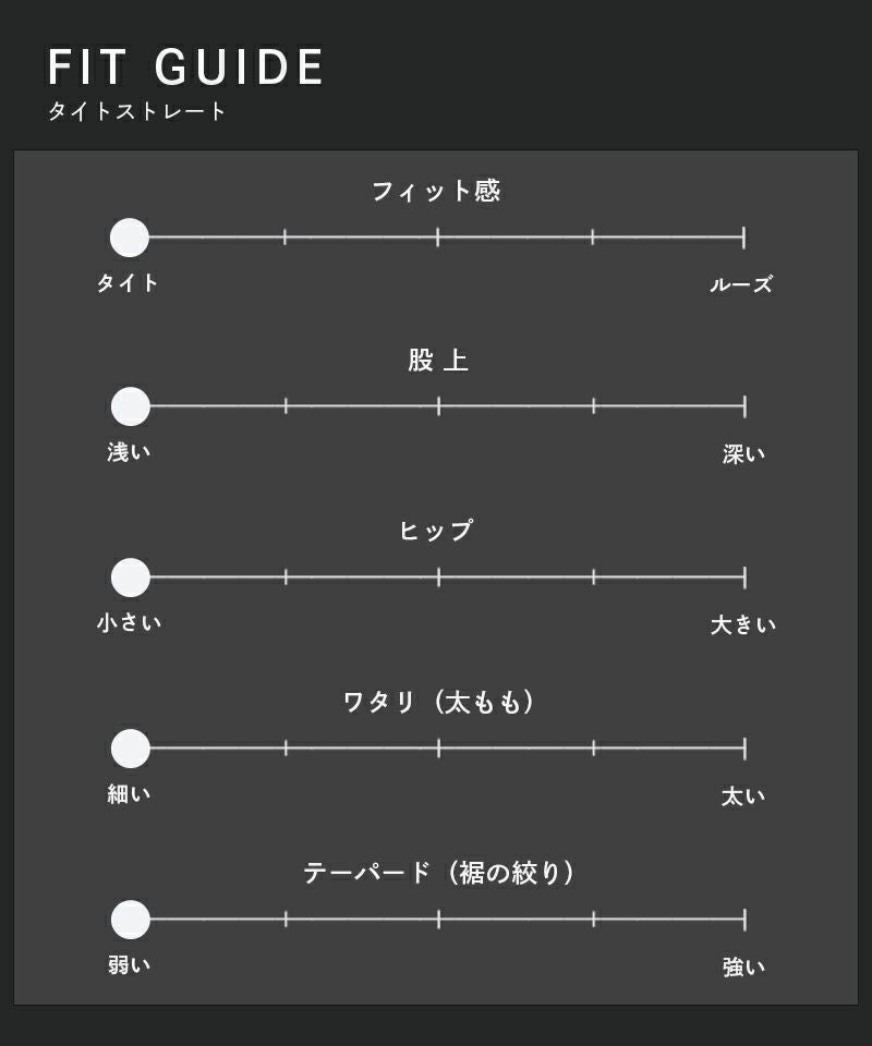 - ヒップ周りから裾まで全体的に細身なシルエット