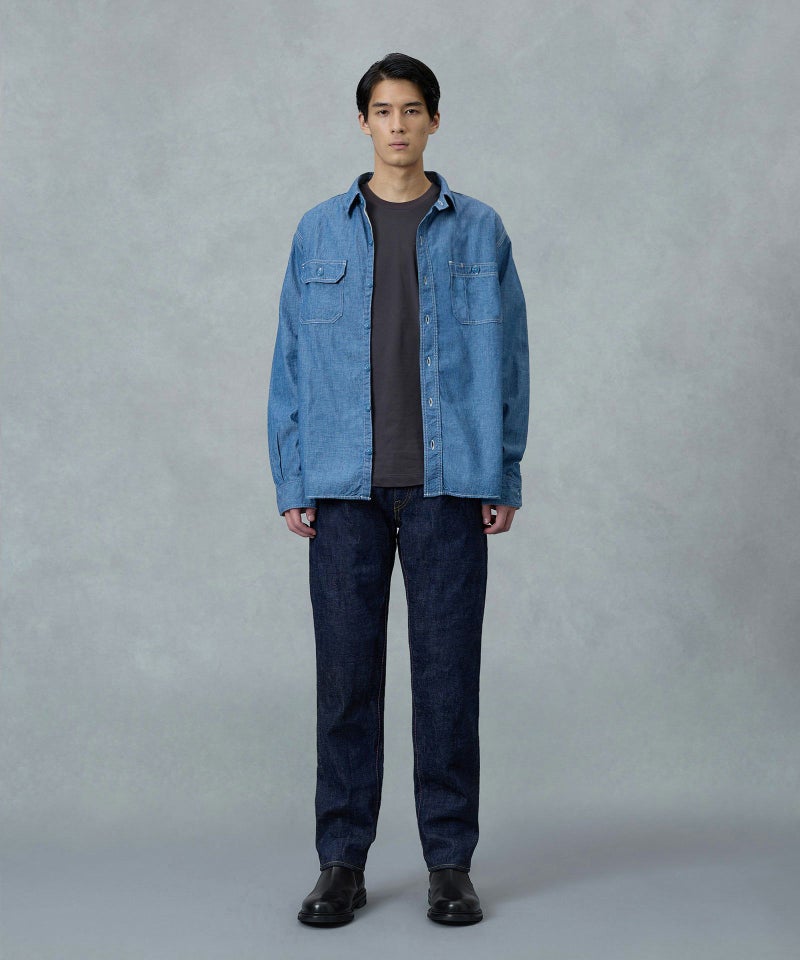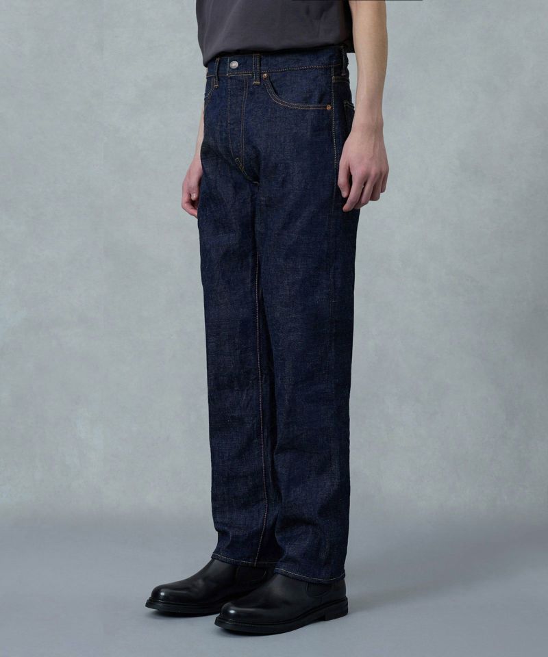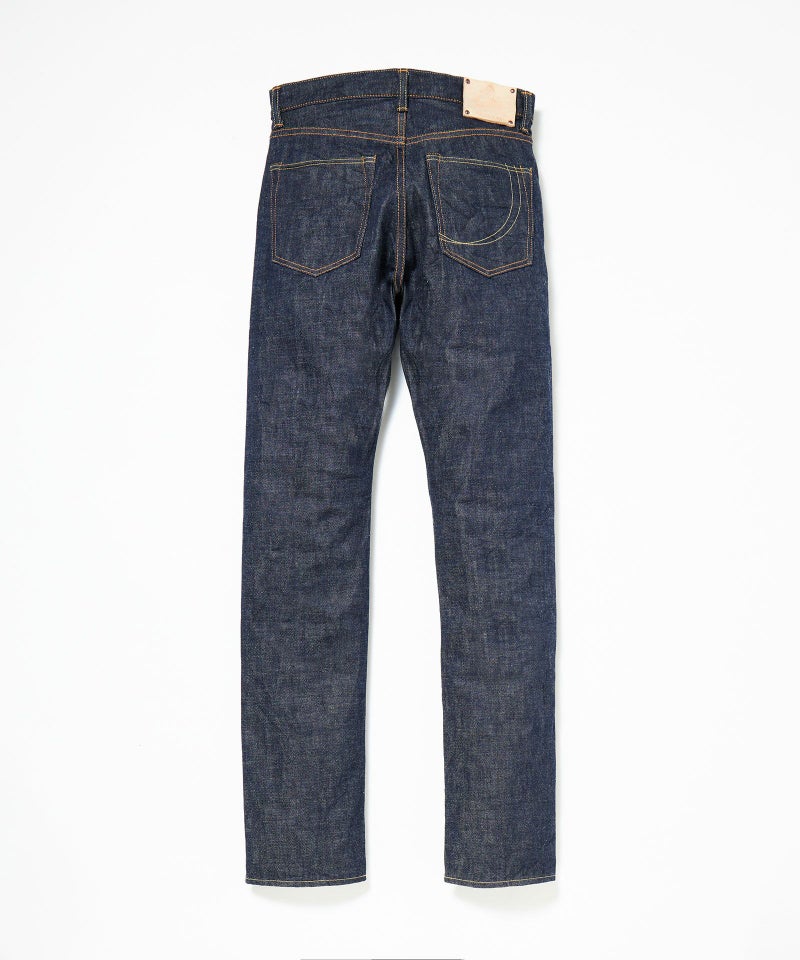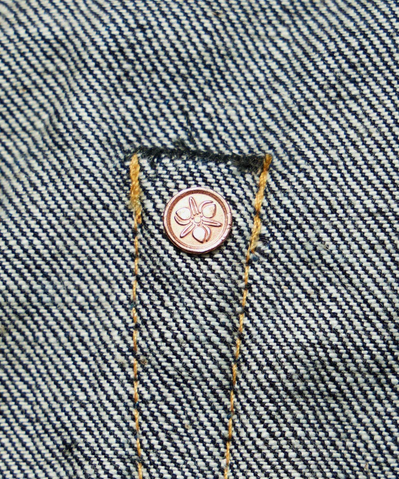 1973年に誕生した初期の純国産ジーンズのブルーを再現して染めたジンバブエコットン/6.5番手糸を、旧式力織機でゆっくりと織り上げた14.7オンスのレガシィブルーのデニム生地。レトロでクラシカルな個性ある表情を持ち、”ブルージーンズ”と呼ぶに相応しい爽やかな青味へと色落ちしていく経年変化を楽しめます。