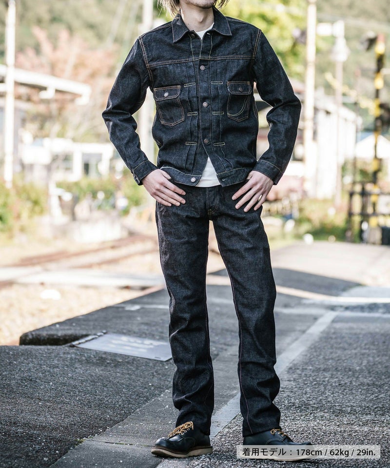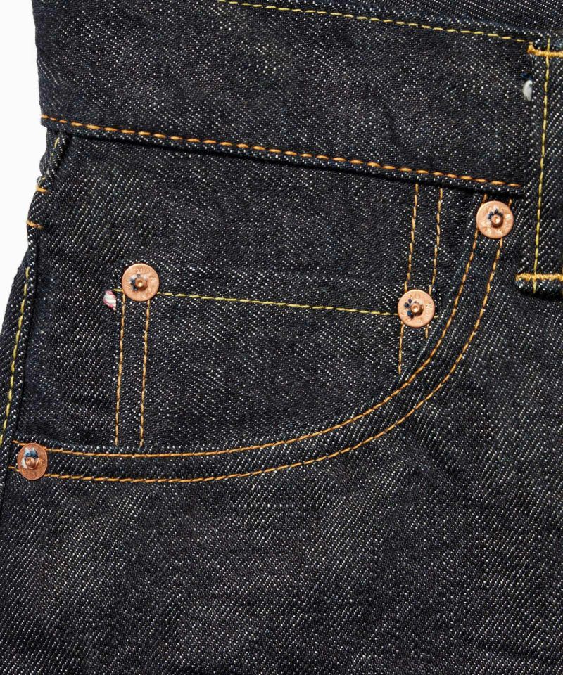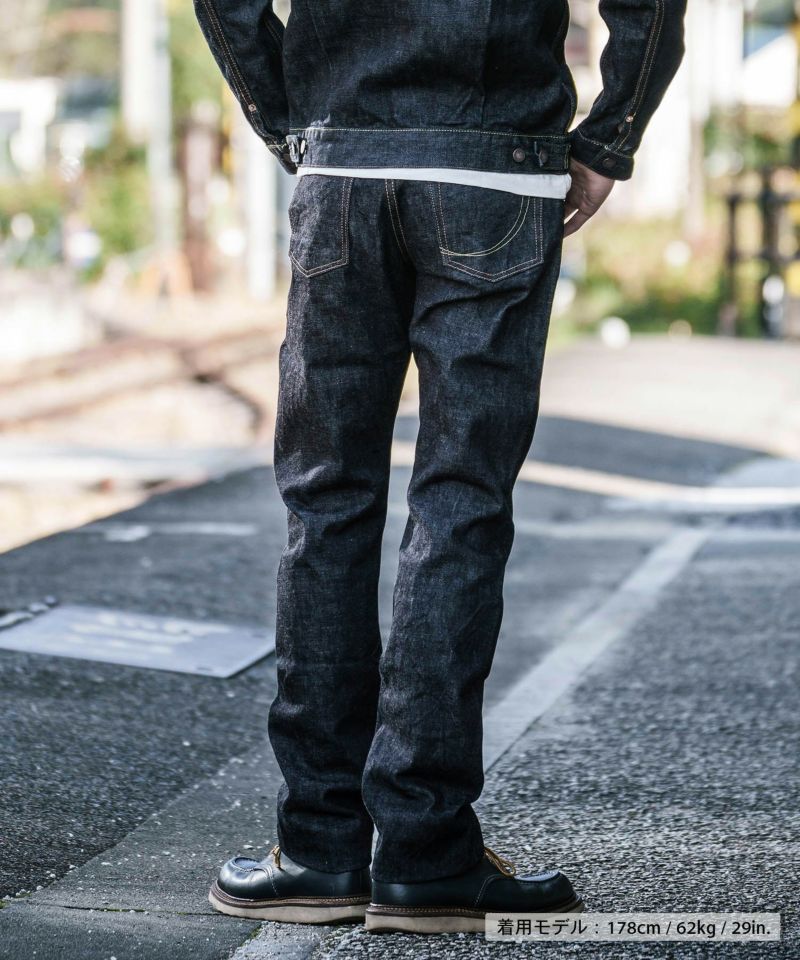 生地仕様:14.7oz 特濃インディゴブルーデニム / 右綾織り / 防縮加工 / ねじれ防止加工 / 毛焼き加工