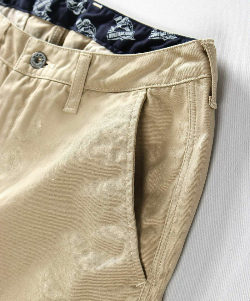 チノクロスの一種で、通称ウエポン。アメリカ・ニューヨークのウエストポイントという地名にあったエリート軍隊士官学校の制服に使われていたことがその名前の由来になったと言われています。2本の糸を使って作られており、単糸で作られたチノクロスよりも適度に肉厚でハリと光沢があり、上質な生地です。糸を2本使うことにより頑丈な仕上がりに。高密度に織り上げているので摩擦に強く、肌触りが良いのも特長。チノが「左綾・単糸」なのに対し、ウエストポイントは「右綾・双糸」という組織の構成になります。