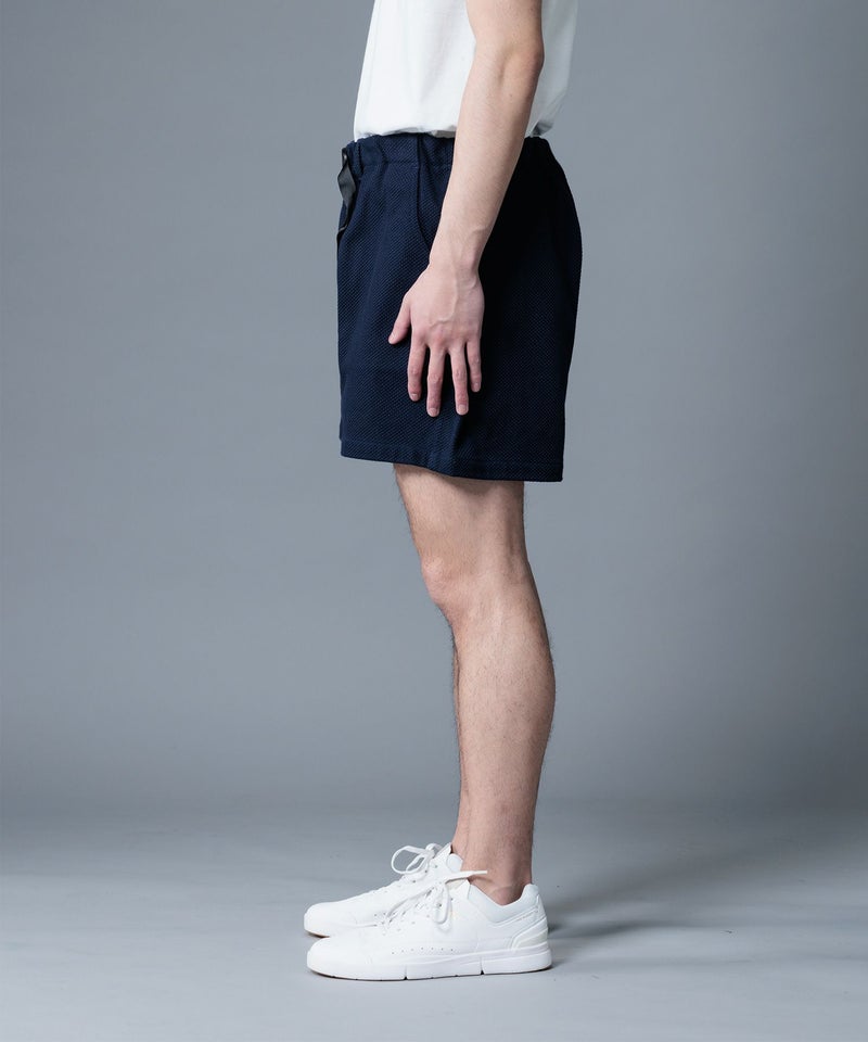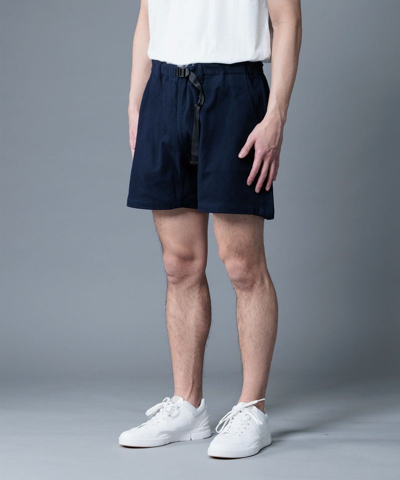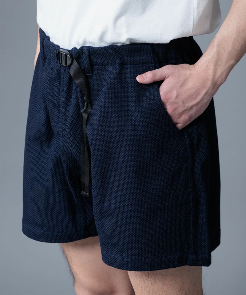 「刺し子のパンツは既に存在するが、その素材を綿からナイロンに変えたら画期的なアイテムになるのではないか?」という企画から生まれたNYLON SASHIKO CLIMBING SHORTSです。