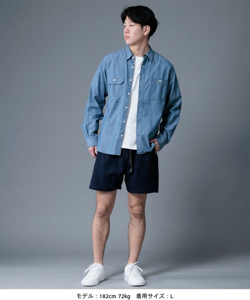 ウエストはゴム&バックル付きのナイロンテープ仕様で様々なフィット感の調節が可能。股底にはマチを付け、程よく力の抜けたアウトドアテイストを楽しめます。
