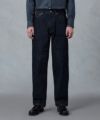ロープ染色を繰り返し特濃インディゴブルーに染めたジンバブエコットン/6番手糸を旧式力織機でゆっくりと織り上げた15.7オンスデニム生地は、力強さのある表情を持ち、濃淡のコントラストのある経年変化と自然なタテ落ちを楽しめます。防縮加工・捻じれ防止加工・生地表面の弱毛焼き加工は行っていません。