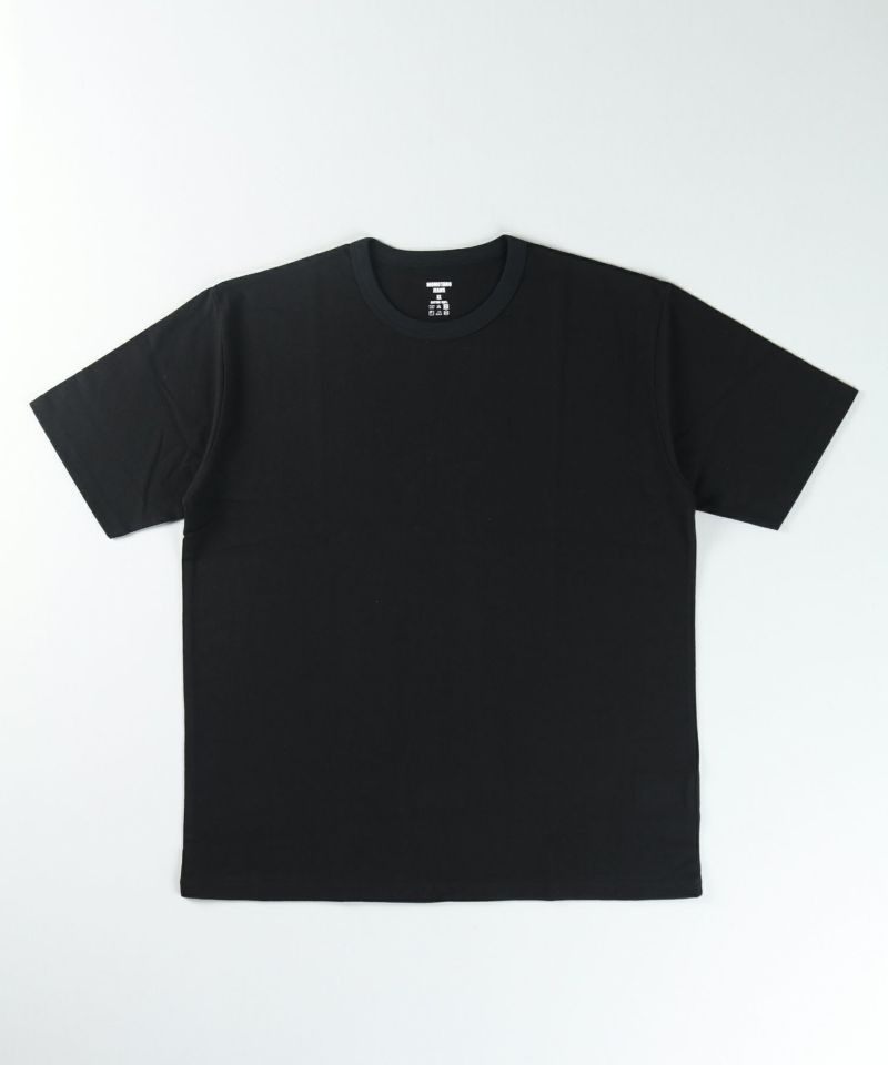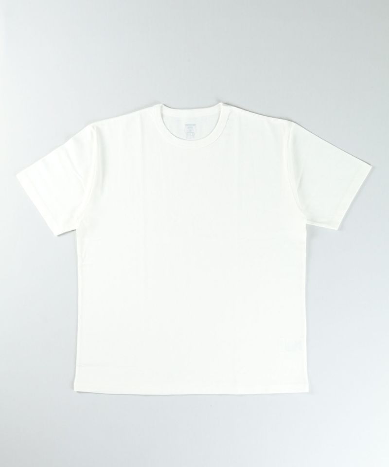 ジンバブエコットン100%、8.5ozのオリジナル度詰め天竺の生地の半袖Tシャツです。14番手/20ゲージのストレート糸で編み上げることで均等な厚みを持ち、手触りや着心地の良さが特長。ぎゅっと目が詰まった肉厚の頼もしい素材感です。首リブは耐久性の高いバインダーネックで着用を繰り返しても伸びにくく、裏の縫い目が着用した時に肌に触れないため快適な着心地を楽しめます。