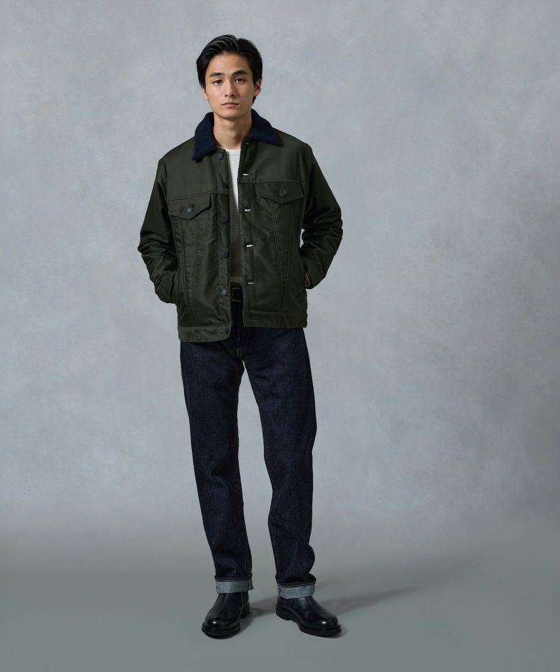 ロープ染色を繰り返し特濃インディゴブルーに染めたジンバブエコットン/6番手糸を旧式力織機でゆっくりと織り上げた15.7オンスデニム生地は、力強さのある表情を持ち、濃淡のコントラストのある経年変化と自然なタテ落ちを楽しめます。