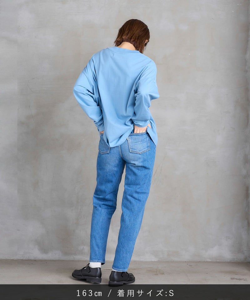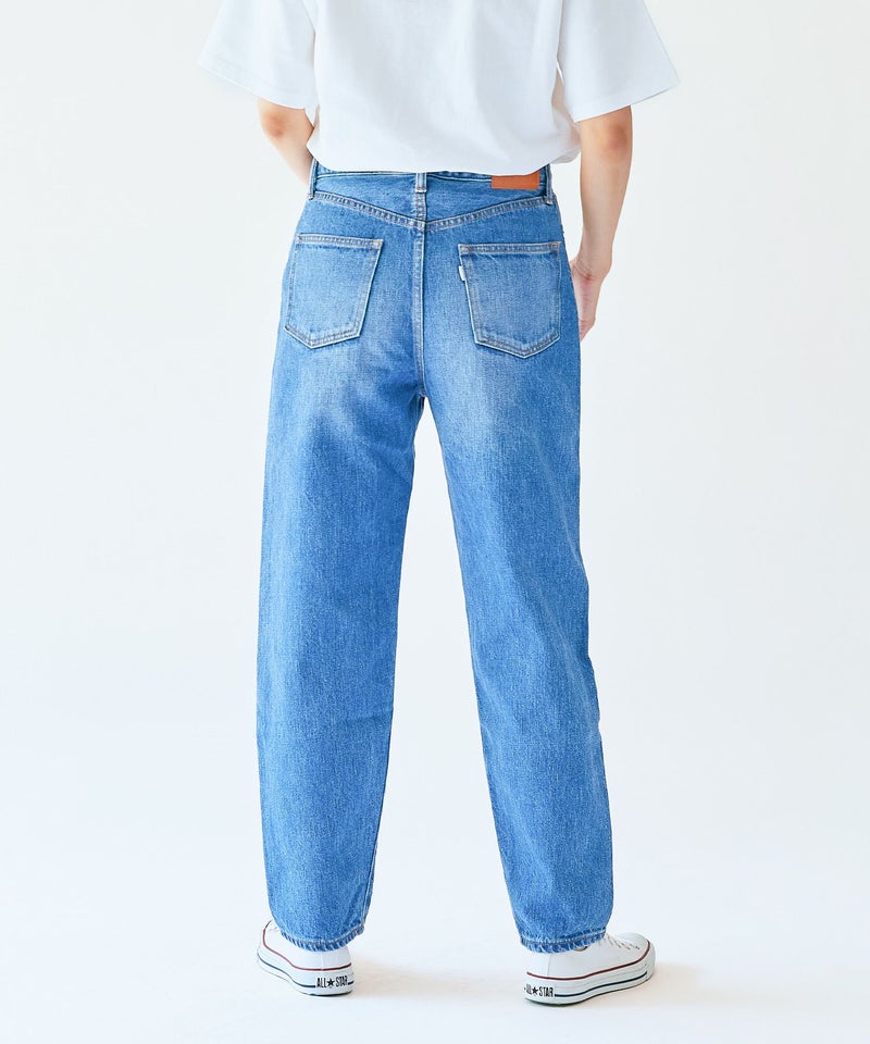 ヴィンテージウォッシュ加工を施した、鮮やかなブルーが映えるジーンズです。