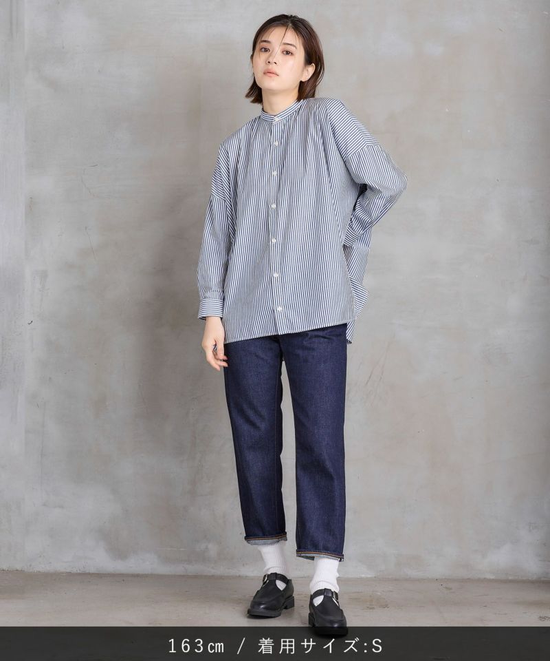 柔らかい生地ながらも程よい厚みがあるので透けにくい素材となっています。裾を折り返した時の赤耳がポイント。