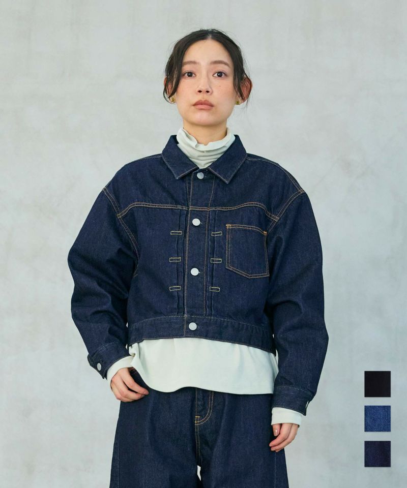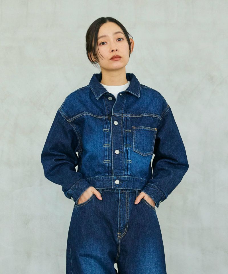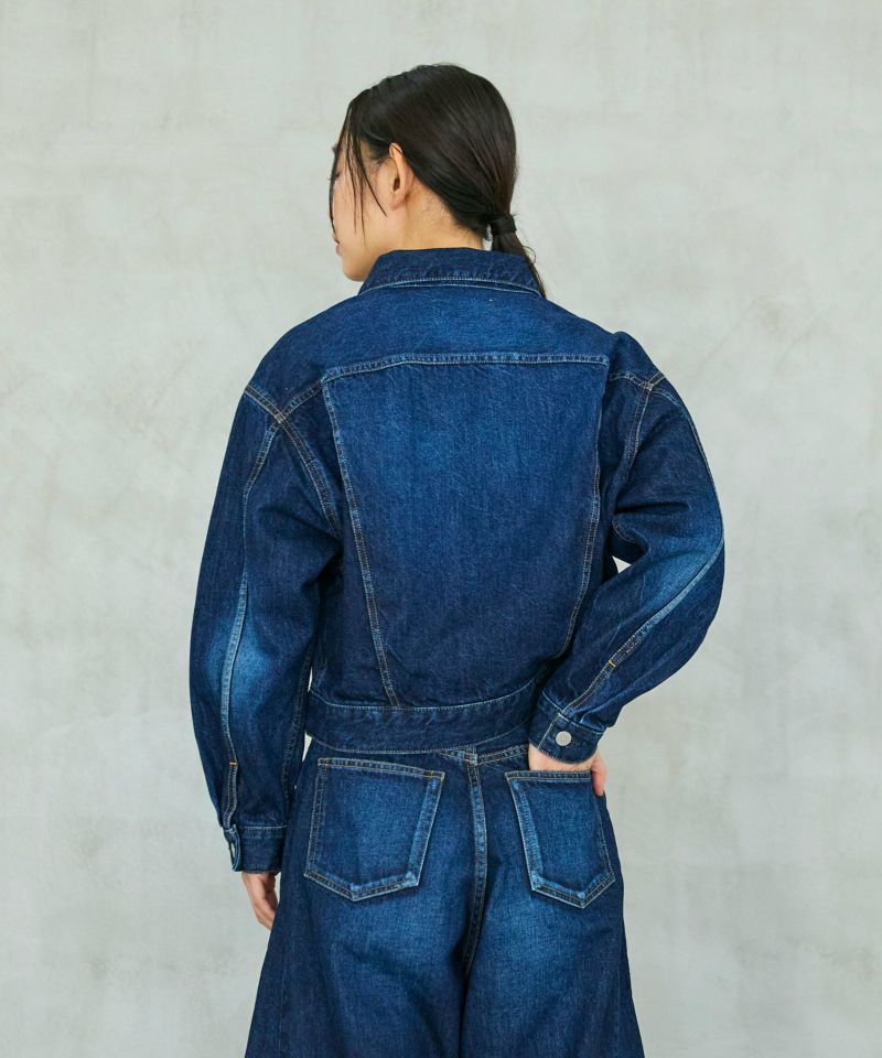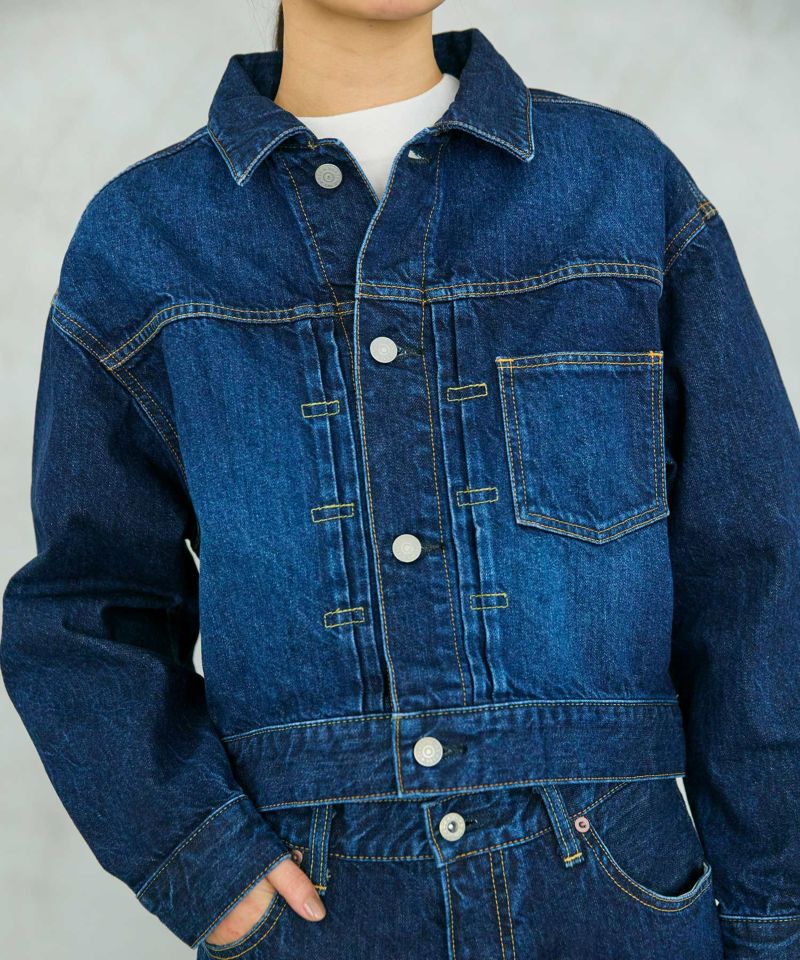 クラシックな「1stタイプ」デニムジャケットをベースに、背中に丸みが出る女性らしいシルエットにアレンジ。