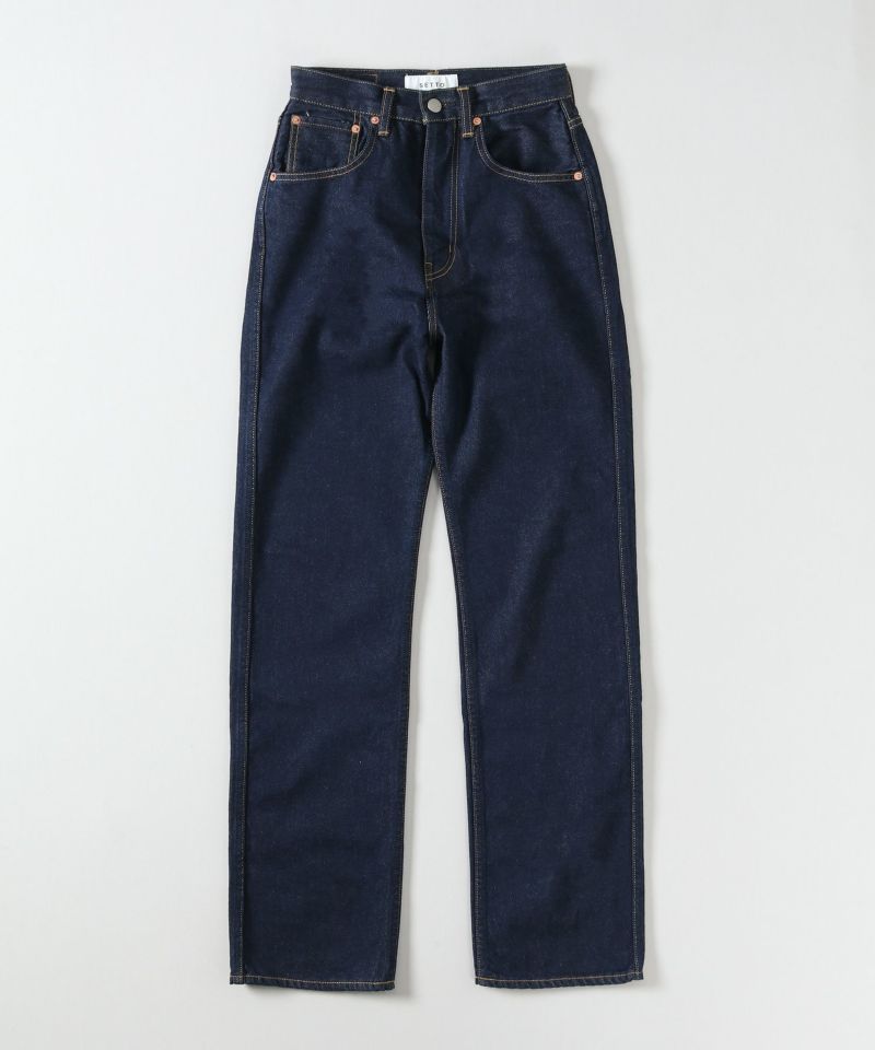 ハイウエストでヒップ回りを包み込み、太ももから緩やかに絞りをかけたすっきりストレート。