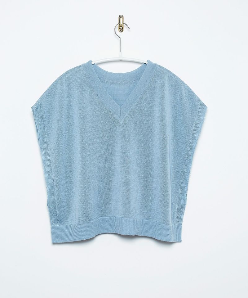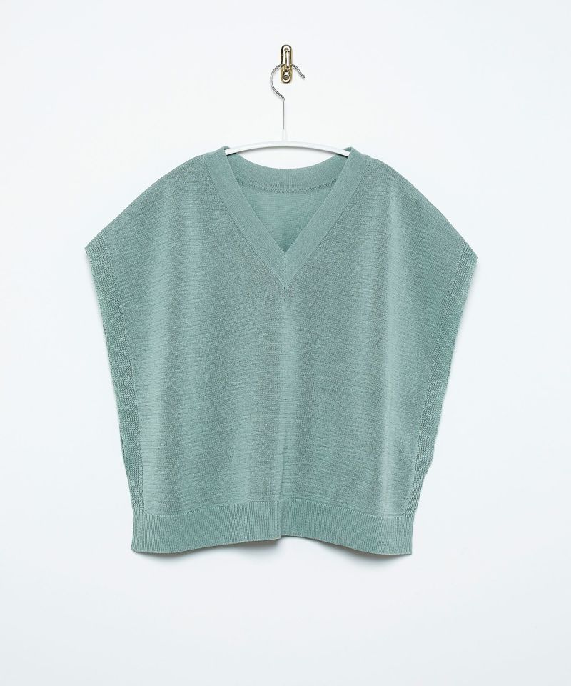 麻のようなドライな風合いに加工するギマ(擬麻)加工を施した1/15のニット素材。
