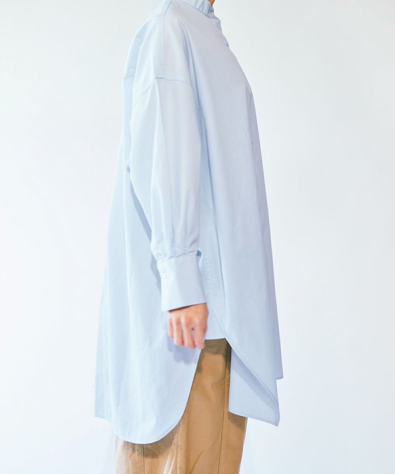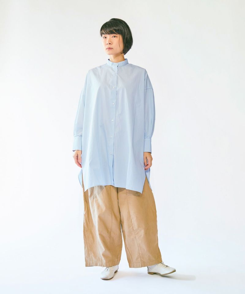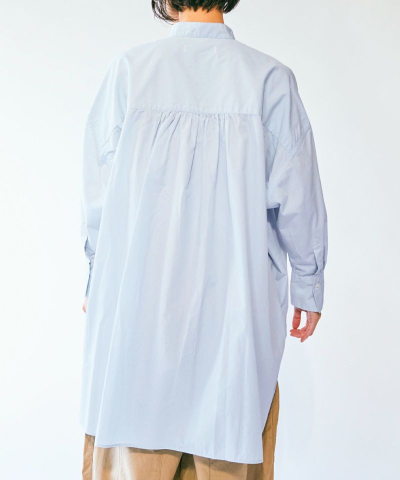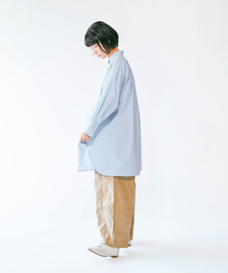 シルエットは、ミドル丈のオーバーシルエットのシャツ。