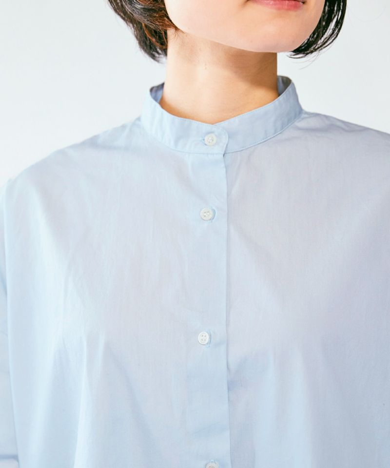50番手のコットンを使ったブロード素材を使用。 打ち込み本数を減らしつつも、適度なハリ感のある生地です。