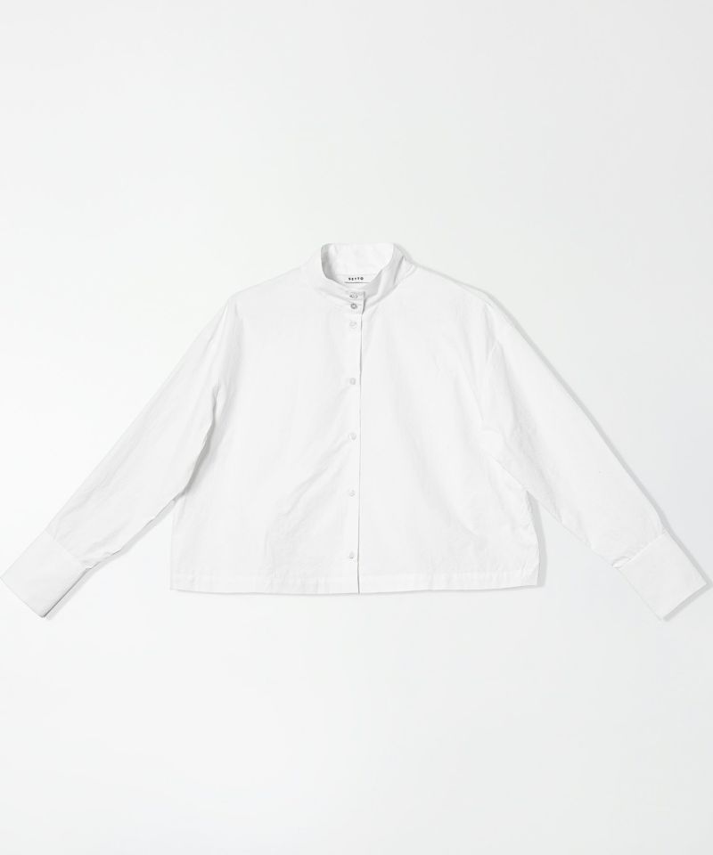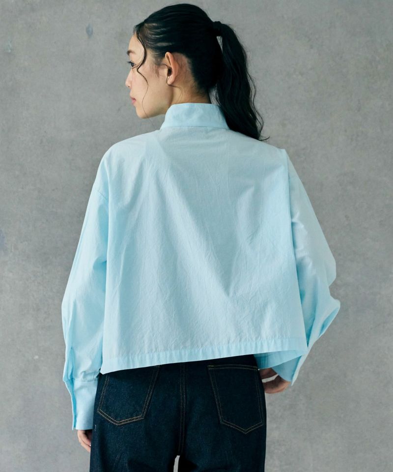 クラシカルな雰囲気漂うスタンドカラーと、身幅が広く風を取り込みやすいボックスシルエットが特徴のオッカケシャツ。