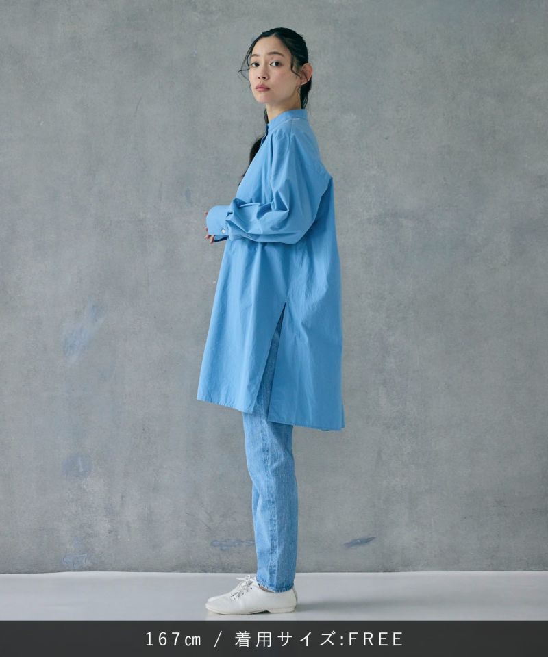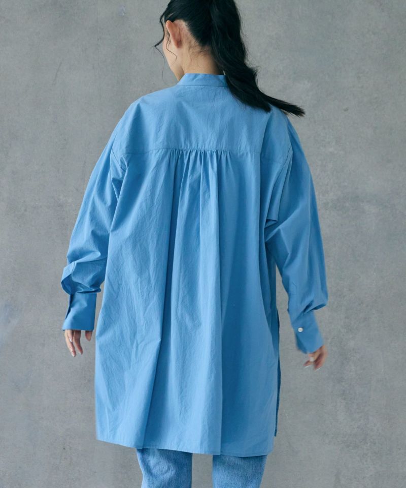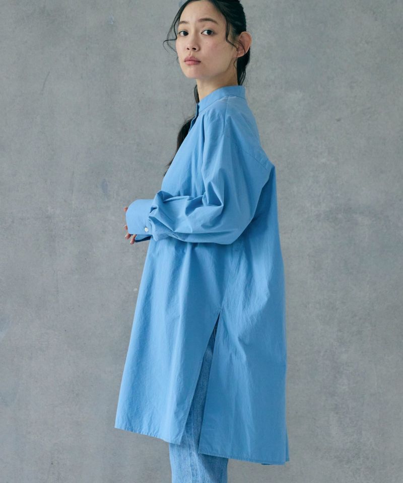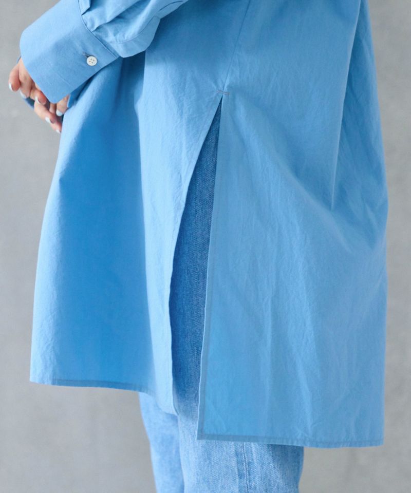 ヒップラインが隠れる程よい長さのオーバーシルエットのミドルシャツ。