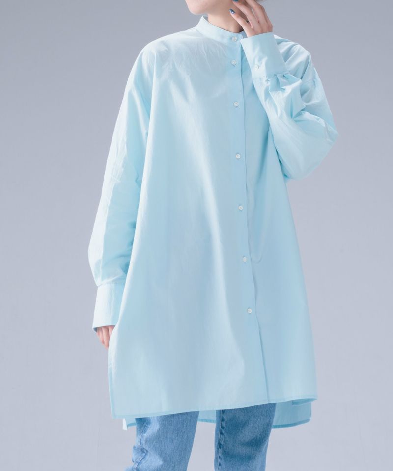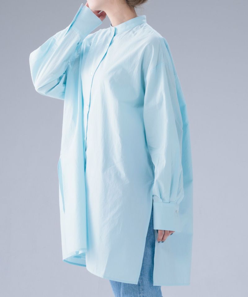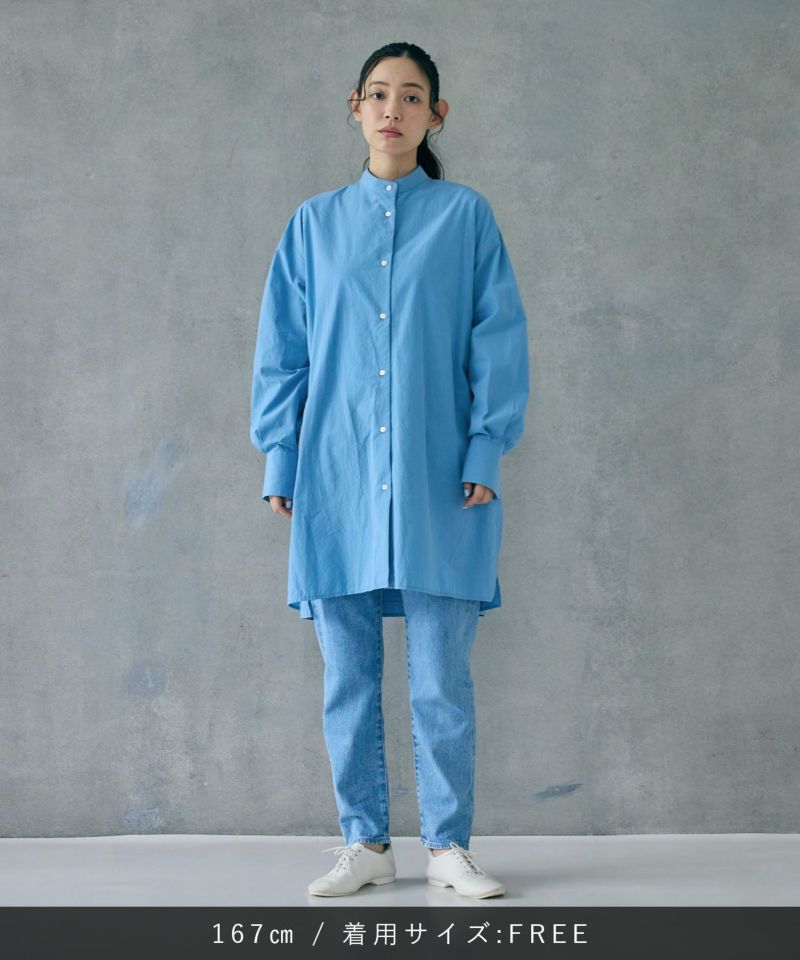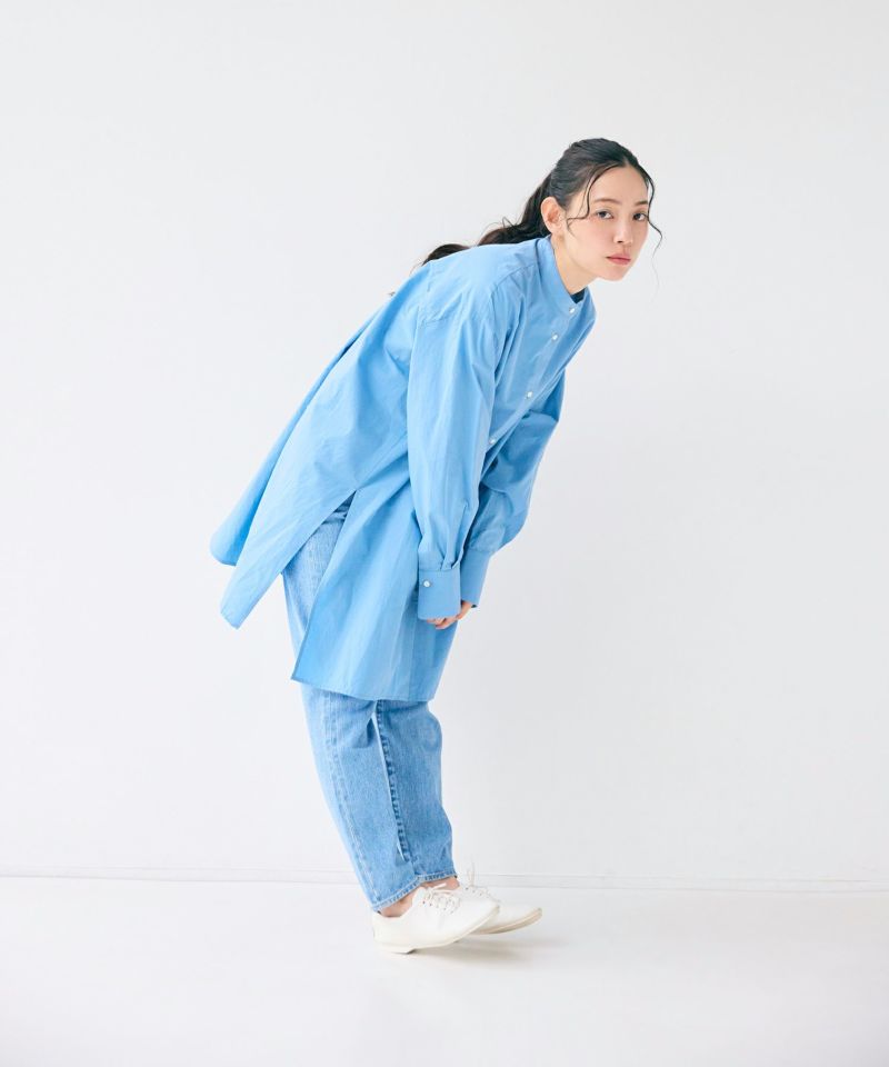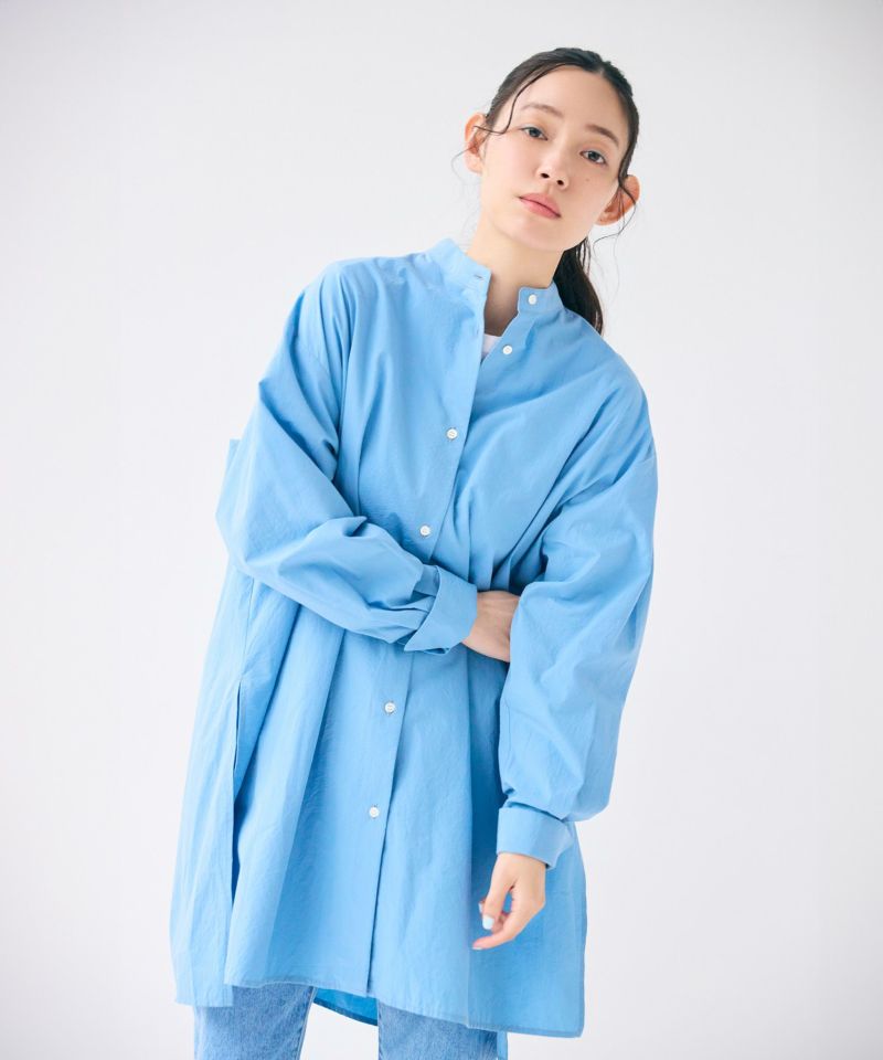 ヒップラインが隠れる程よい長さのオーバーシルエットのミドルシャツ。