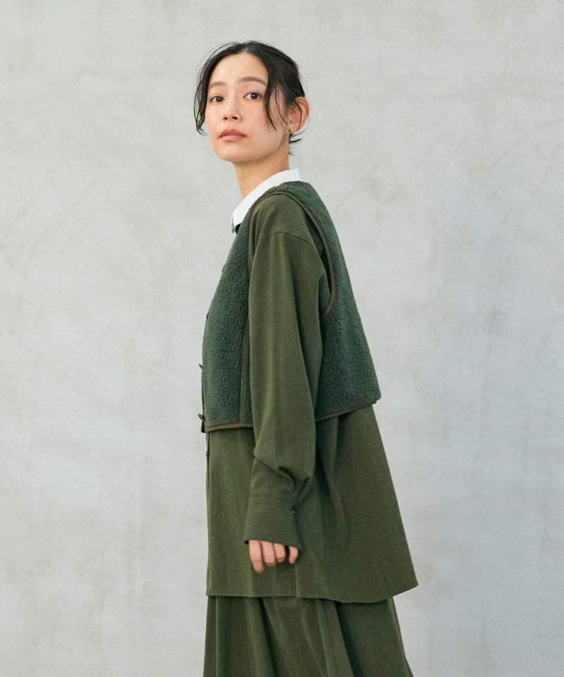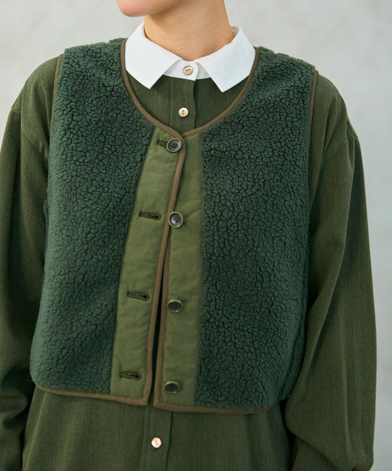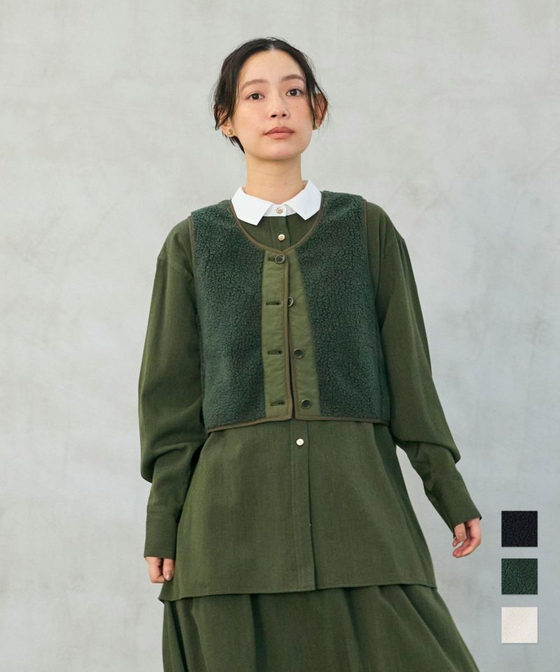 ふくらみとボリュームのあるボア素材で作った、ショート丈のベスト。