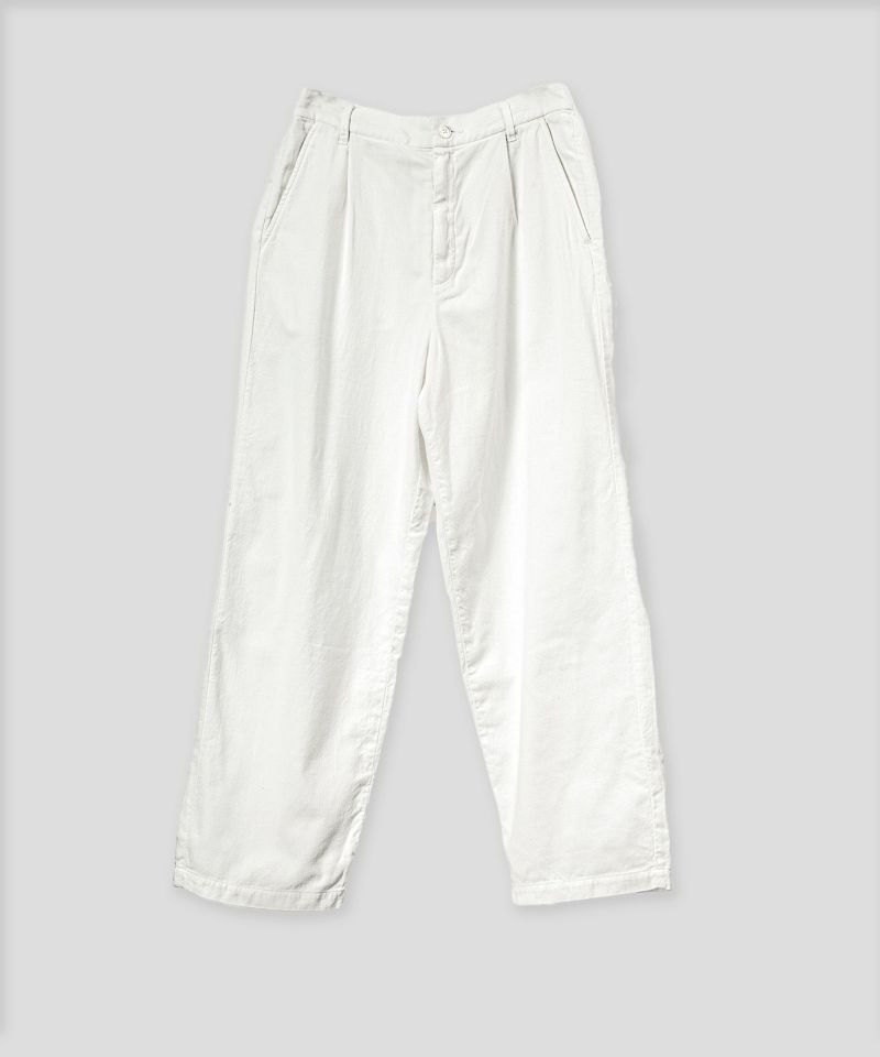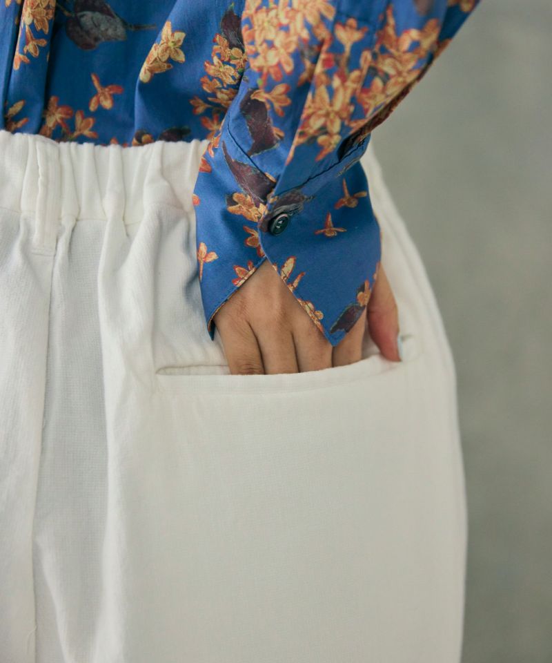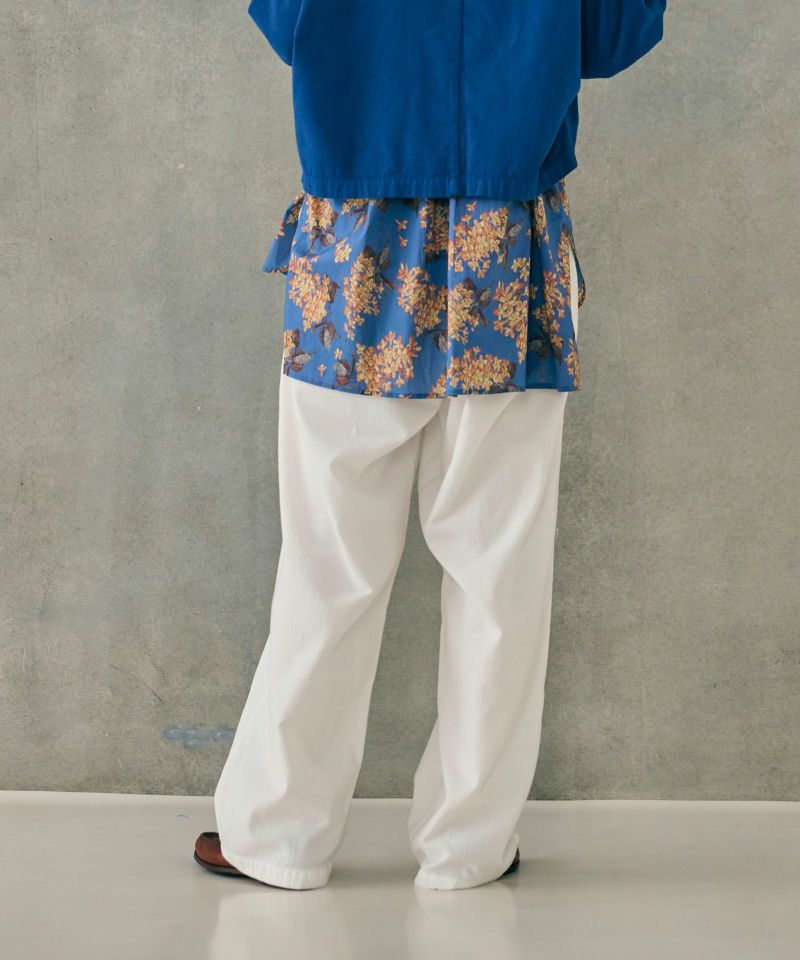 長めのレングスで足元は裾に生地がたまるルーズさが特徴。