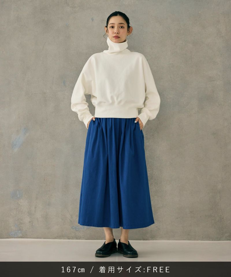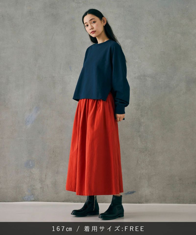 シルエットにこだわりながら、シンプルで一枚で着映えするスカートです。