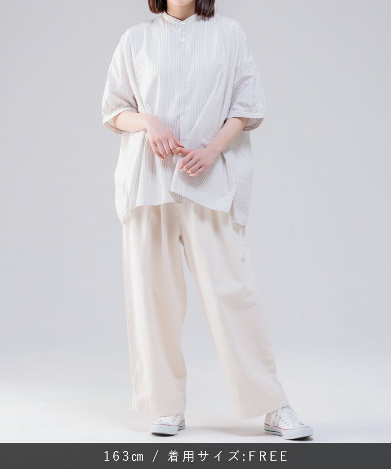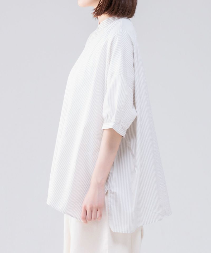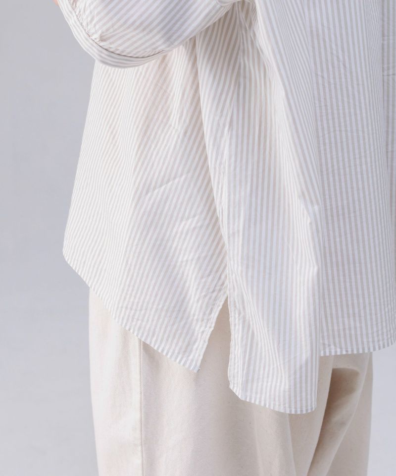 風がたっぷり通るゆったりとしたデザインは、リラックス感もあり気温が高い日も気持ちよく着られる1枚です。