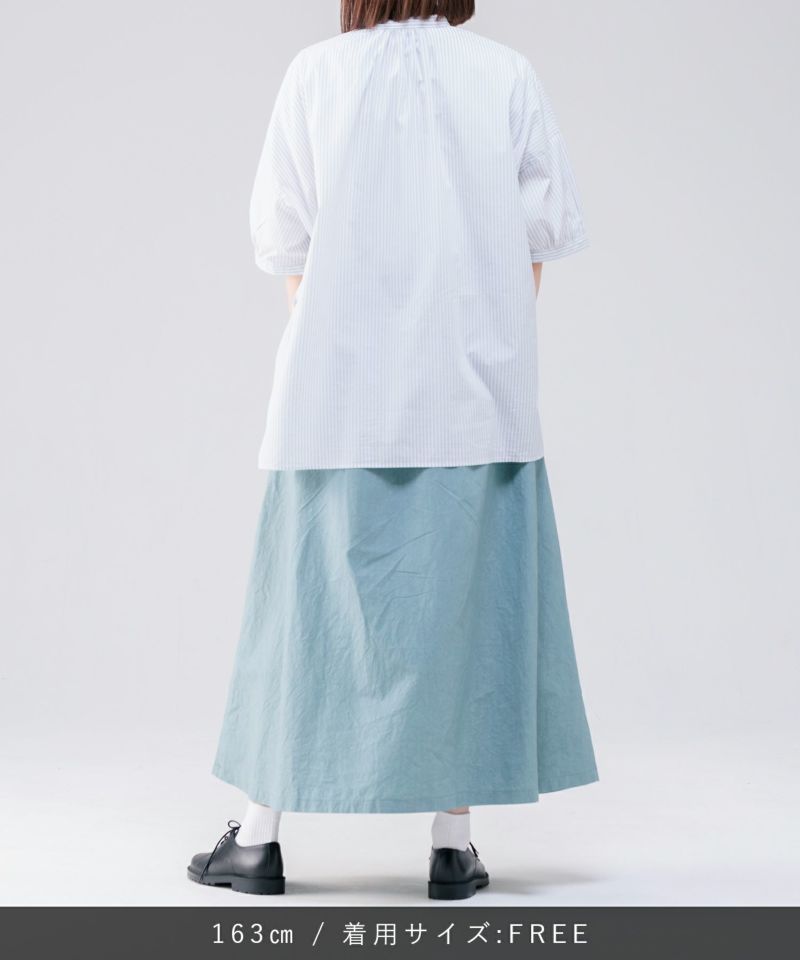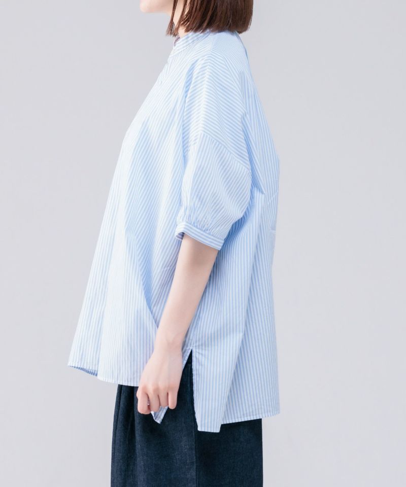 定番シャツの「FARMS SHIRT」を5分袖にし、袖をパフスリーブ仕様に。