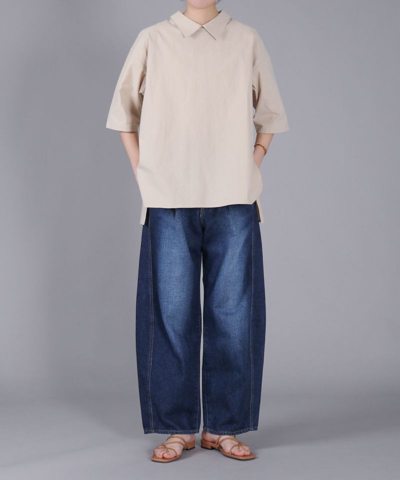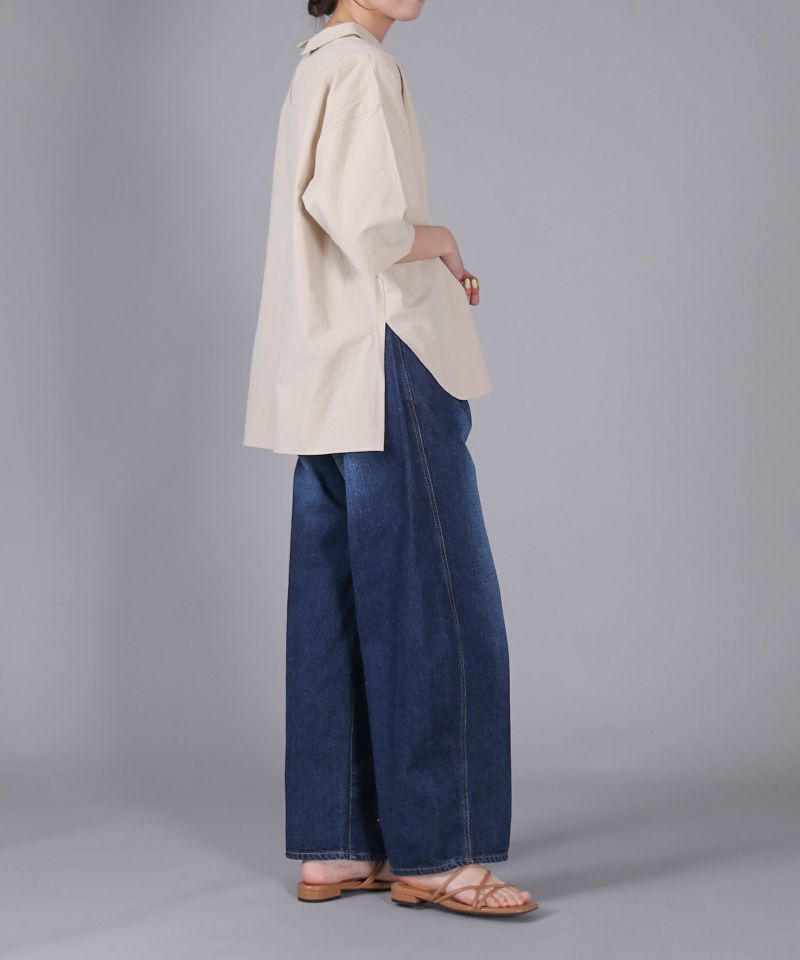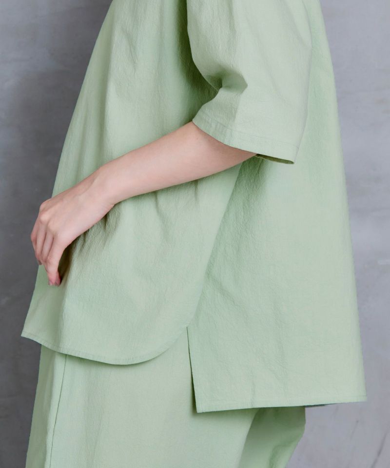 強撚糸を使うことでシャリ感が生まれ、洗いをかけることで独特の風合いやシワ感が楽しめるのも魅力。
