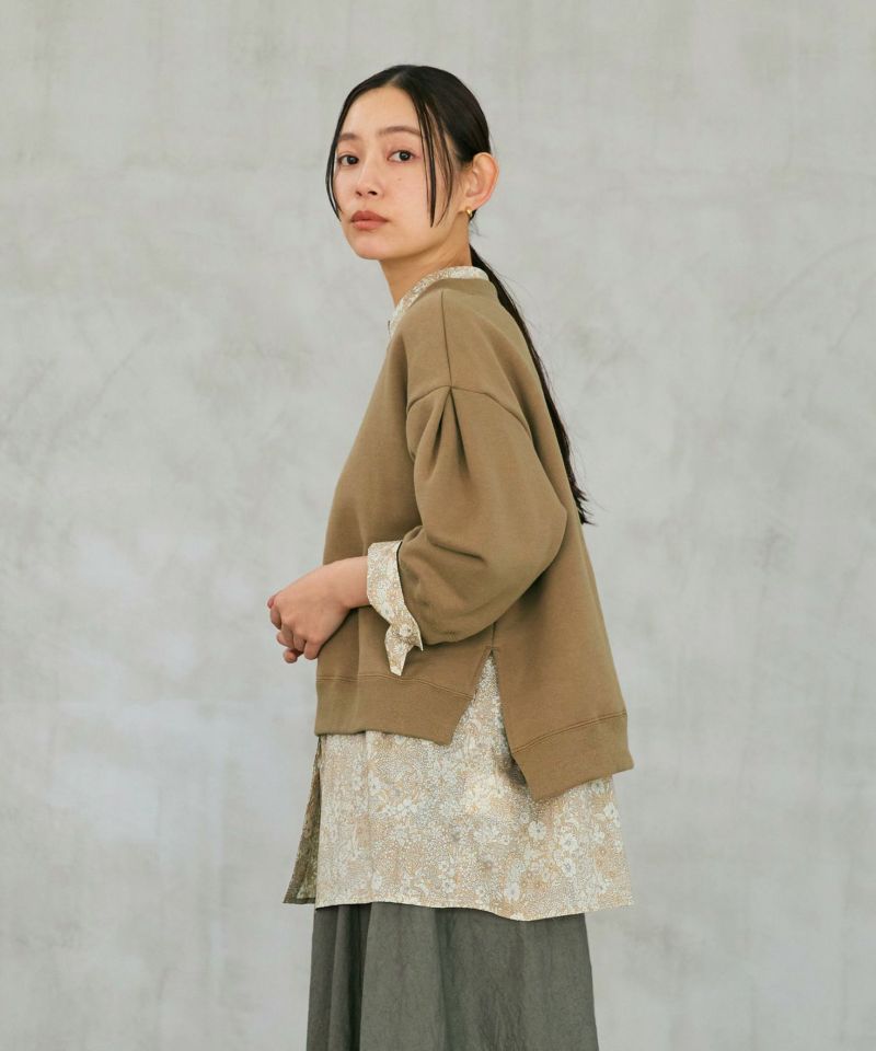 中にシャツなどを重ねることを考えて作ったスウェット。