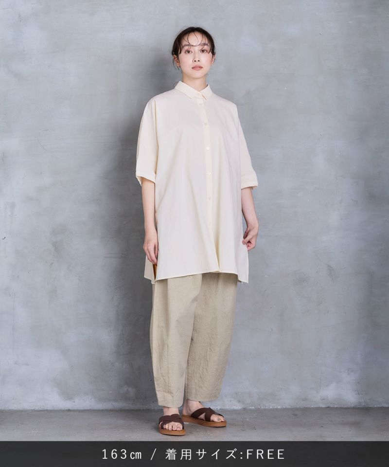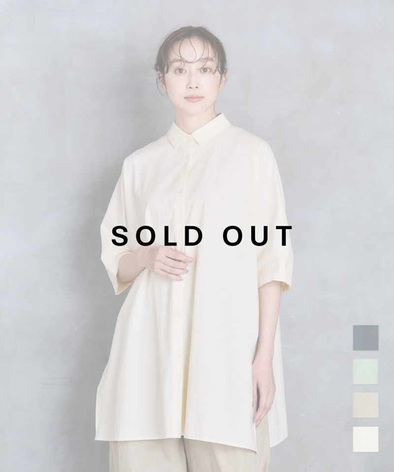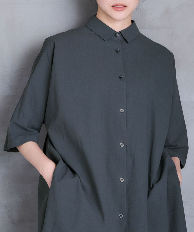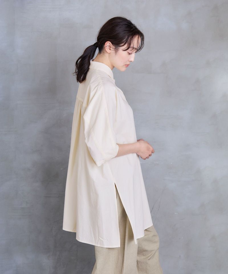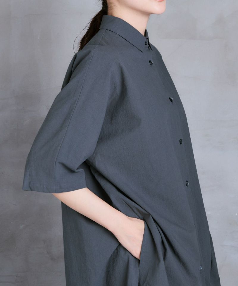 縦のラインが美しいミドルレングスの5分袖シャツ。