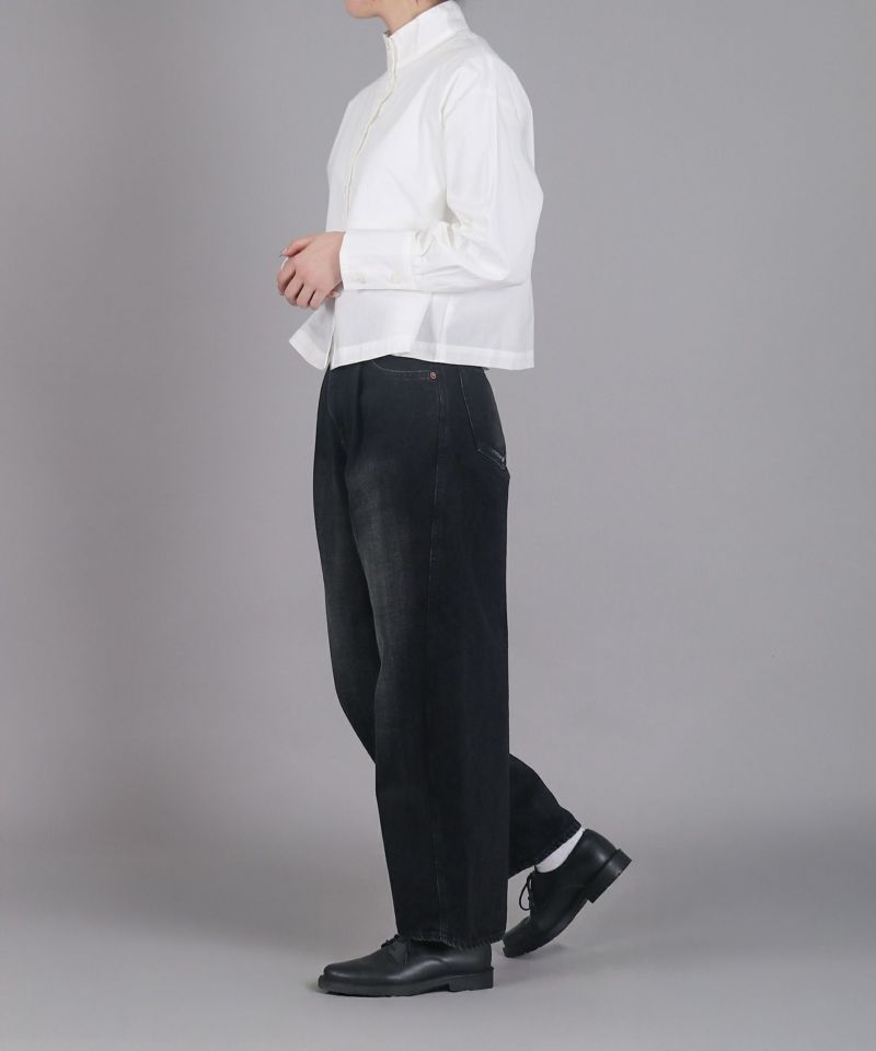 インディゴの深みはしっかりと残しながら、女性らしい淡いトーンになるような色落ち加工をしています。時間が経つにつれてさらに明るい色合いに変化していきます。