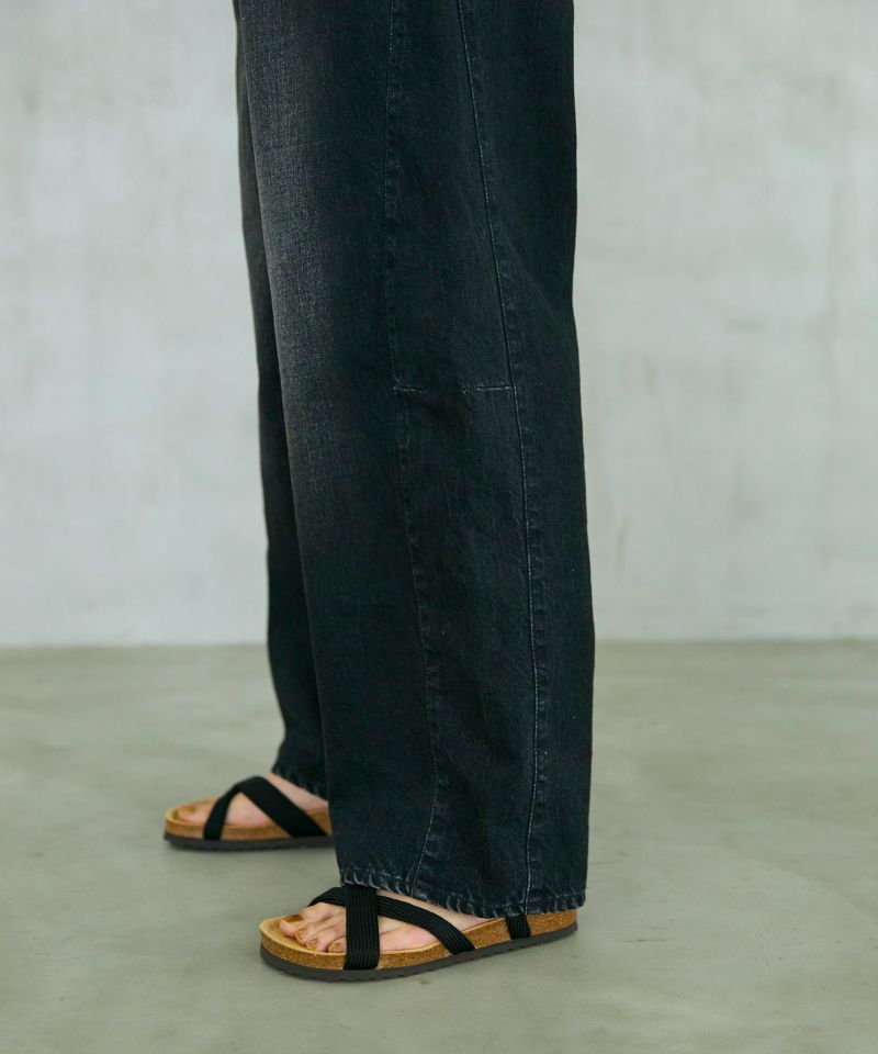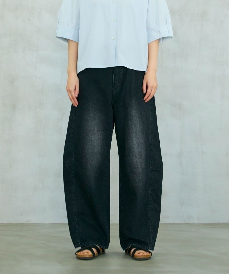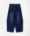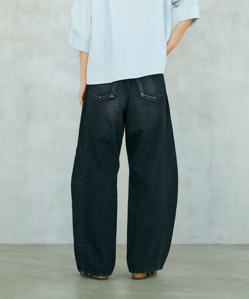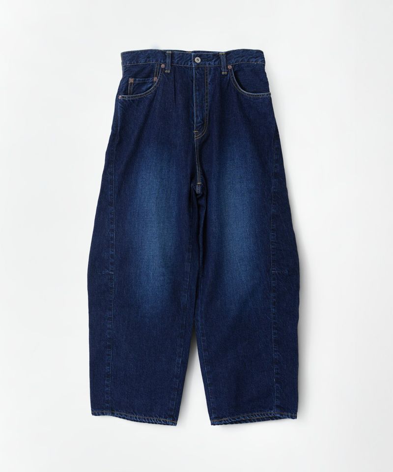 パネルのように縫製された立体的なシルエットのワイドジーンズ。