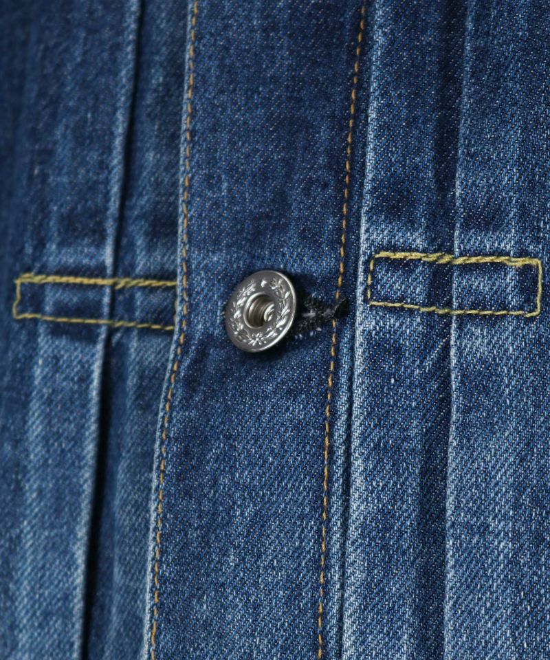 短めの着丈×ボックスシルエットに、前身頃のアクションプリーツやボックスステッチなど、1st型ならではのディテールを忠実に再現。