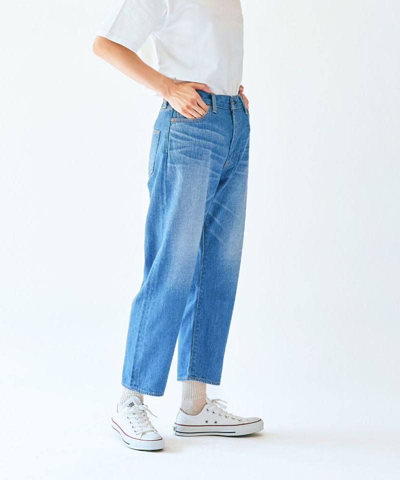 ヴィンテージウォッシュ加工を施した、鮮やかなブルーが映えるジーンズです。