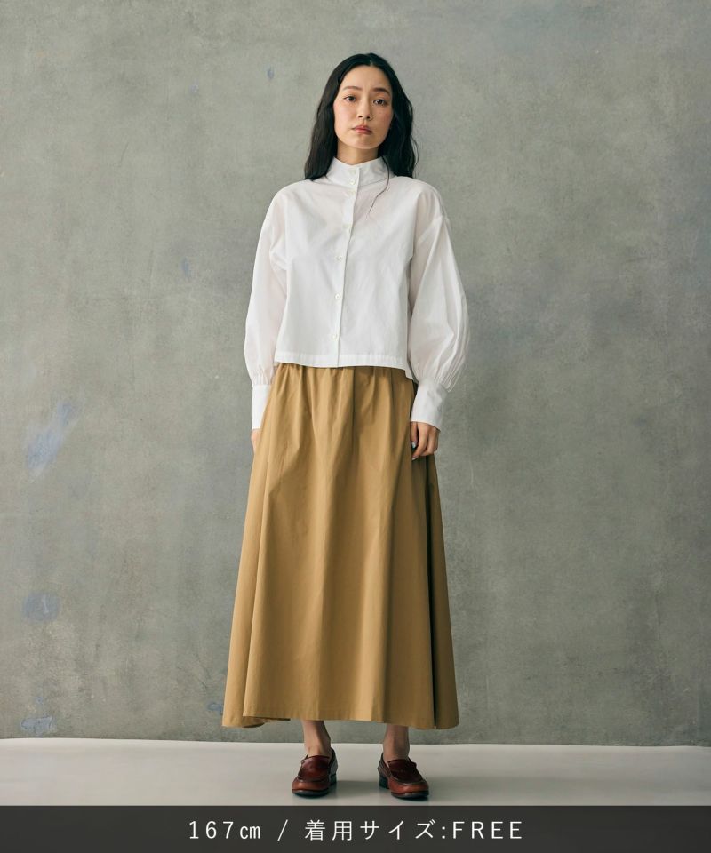 たっぷりのギャザー入りで、ふわっと広がるAラインシルエットのスカート。
