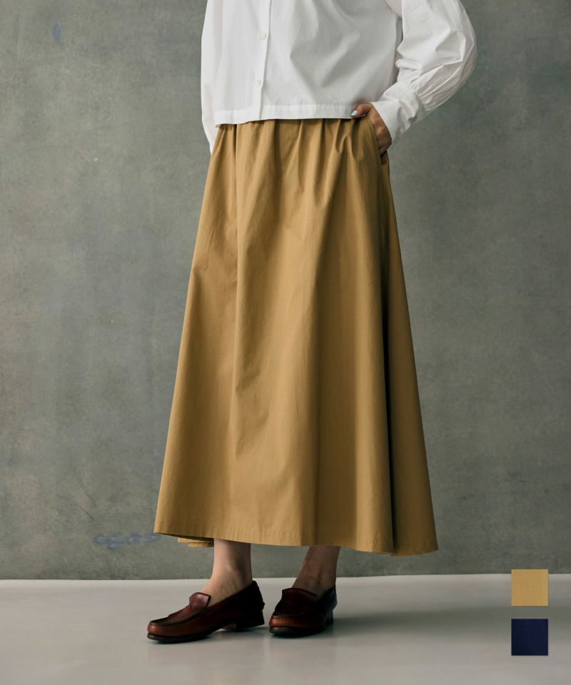足元まで隠れるロングスカートなので、気になる脚のラインも自然にカバーしてくれます。