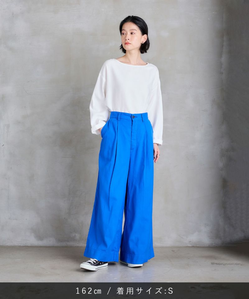 フロントにタックの入ったワイドストレートパンツ。