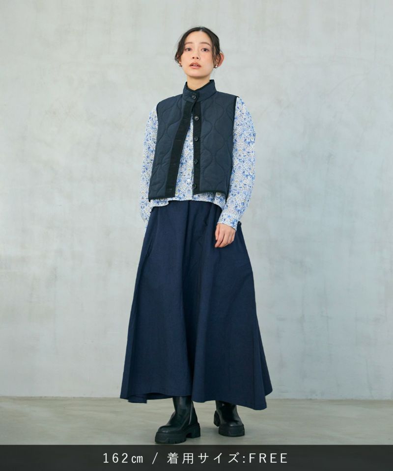 足元まで隠れるロング丈で、脚のラインも自然にカバーしてくれます。