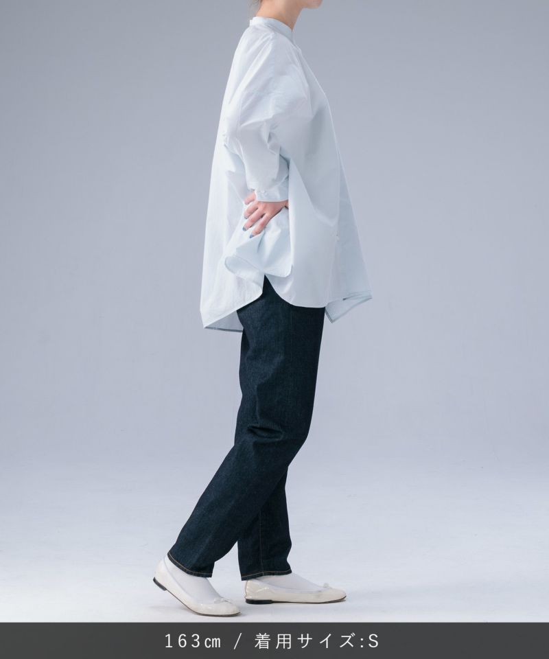 ヒップにゆとりを持たせ、裾に向かってテーパードを効かせたすっきりシルエット。